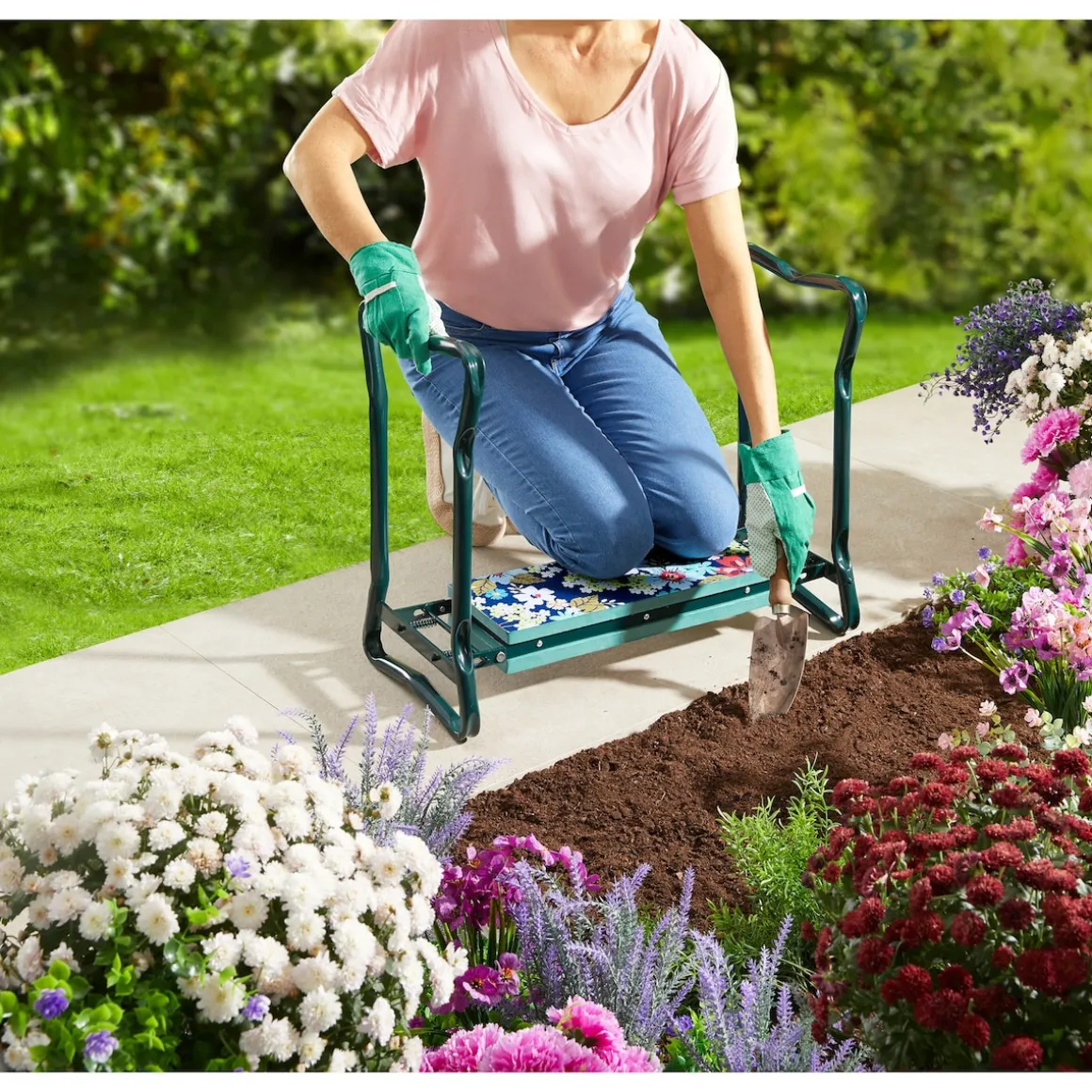 Zum Niederknien praktisch: Mit diesem cleveren und stabilen Helfer knien Sie bei der Gartenarbeit bequem auf dem weichen Polster und schonen so Ihre Gelenke. Umgedreht wird er zur komfortablen Sitzgelegenheit – ideal für die Pause zwischendurch.
