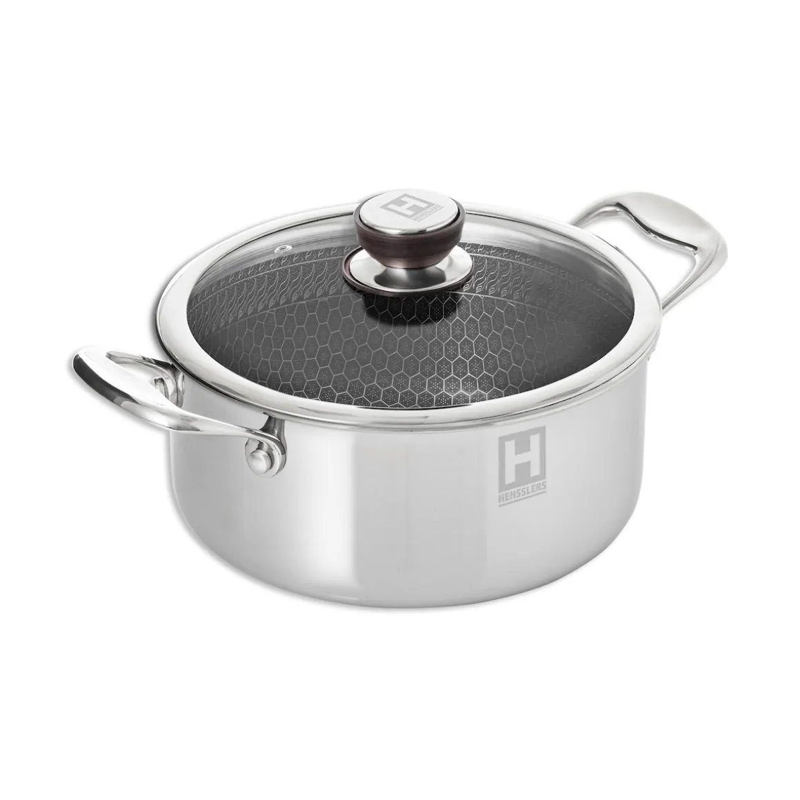 Dieser Liter-Kochtopf ist perfekt für schnelle Kochvorgänge. Mit hitzeresistenten Griffen, Antihaftbeschichtung und Ofenfestigkeit bis 230°C bietet er Vielseitigkeit und Bequemlichkeit. Seine Aluminium-Edelstahl-Struktur und innovative Wabenstruktur machen ihn kratzfest und langlebig. Er eignet sich für alle Herdarten und ist spülmaschinenfest. Entwickelt im „Henssler’s Schnelle Nummer“-Kosmos, repräsentiert er Qualität und Innovation. Ideal für Steffen Hensslers Fans und alle, die schnelles, einfaches und leckeres Kochen lieben.