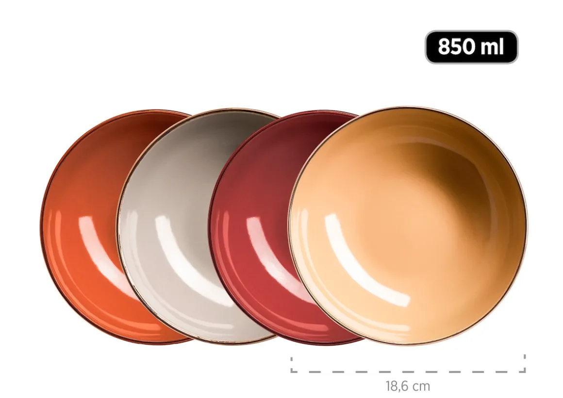Die Kollektion METALLIC RIM der österreichischen Traditionsmarke MÄSER kombiniert auf erfrischende Weise modernes Design in Material, Form- und Farbgebung mit festlicher Eleganz. Trotz seiner messingfarben schimernden Umrandung ist dieses Geschirrset spülmaschinen- und mikrowellengeeignet, und damit äußerst pflegeleicht. So verzaubert die Serie METALLIC RIM Ihre Gäste nicht nur zu besonderen Anlässen, sondern wertet Ihren Esstisch auch im Alltag auf. Ein besonderes Highlight ist die großzügige Mehrzweckschale, die Müslischale und Suppenteller im Zeitgeist des Bowl-Trends vereint. Dieses Service wird in einer speziell für dieses Set entwickelten, vielfach getesteten Transportverpackung aus umweltfreundlicher Wellpappe versendet. Zur besseren objektiven Vergleichbarkeit gehen unsere Füllmengenangaben von einer randvollen Befüllung aus. Bitte beachten Sie: Die Serie METALLIC RIM wird händisch glasiert, wodurch leichte Unebenheiten, kleine Einschlüsse und minimale Farbabweichungen auftreten können.