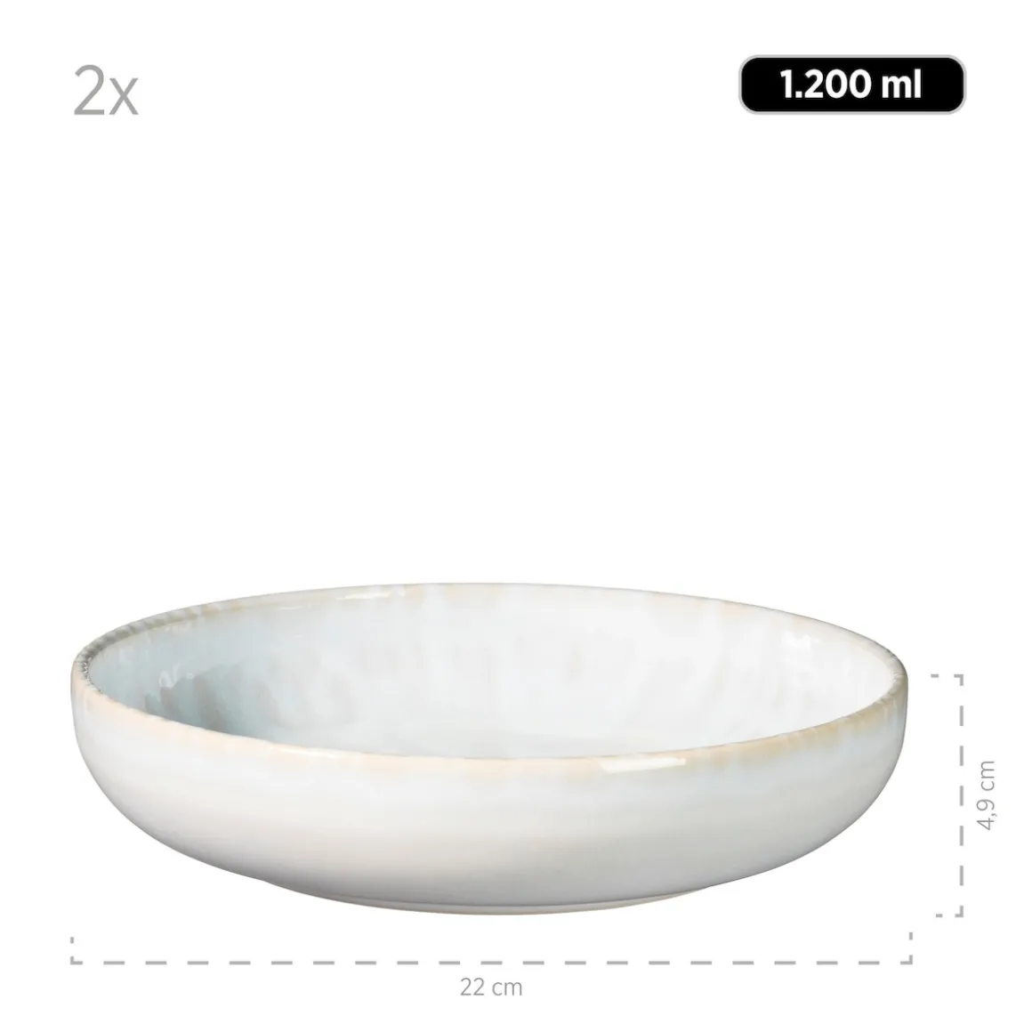 Wenn traditionelle portugiesische Azulejo-Ornamente auf magische Reaktivglasuren treffen, entstehen einzigartige Werke von fesselnder Schönheit. Die unter ressourcenschonenden Bedingungen in Portugal hergestellte Keramikgeschirr-Kollektion „Tiles“ der Traditionsmarke MÄSER transportiert die jahrtausendealte Faszination maurischer Kunst, welche durch eine besondere Glasurtechnik auf jedem Teil von unterschiedlich fließenden Farbverläufen umspielt wird. Besonders gut zur Geltung kommen die inspirierten Dekore dieser Geschirrserie durch die elegant-reduzierte und zugleich großzügige Formgebung der Teller und Schalen. Der Clou: Ganz nach Ihrem Geschmack entscheiden Sie sich zwischen selbstbewussten, dickwandigen Scandi-Formen mit umlaufendem Steg oder grazileren, abgerundeten Coupe-Formen mit geringerem Gewicht und Platzbedarf in Spülmaschine und Küchenschrank. Für welchen Formstil auch immer Sie sich entscheiden: Mit der Tafelgeschirr-Kollektion „Tiles“ hinterlassen Sie nicht nur einen bleibenden Eindruck bei Ihren Gästen, sondern verwandeln auch jede Ihrer Mahlzeiten in einen wahren Augenschmaus. Die Serie „Tiles“ ist aus Steinzeug gefertigt – einer hochwertigen Form der Keramik, die nicht mit dem brüchigeren und poröseren Steingut zu verwechseln ist. In seiner täglichen Handhabung unterscheidet sich hochwertiges Steinzeuggeschirr kaum von Porzellangeschirr: Die gesamte Serie ist mikrowellen- und spülmaschinengeeignet, hitzebeständig und tiefkühlgeeignet und damit absolut alltagstauglich. Dieses Service Set wird in einer vielfach auf Bruchsicherheit getesteten Paketversandverpackung aus ressourcenschonenden Materialien versendet. Bitte beachten Sie: Durch die besondere Glasurtechnik können minimale Unebenheiten in der Glasur auftreten, ebenso tragen Farbabweichungen zwischen verschiedenen Teilen zum typischen, lebendigen Charakter dieser Kollektion bei. Zur besseren objektiven Vergleichbarkeit gehen unsere Füllmengenangaben stets von einer randvollen Befüllung aus.