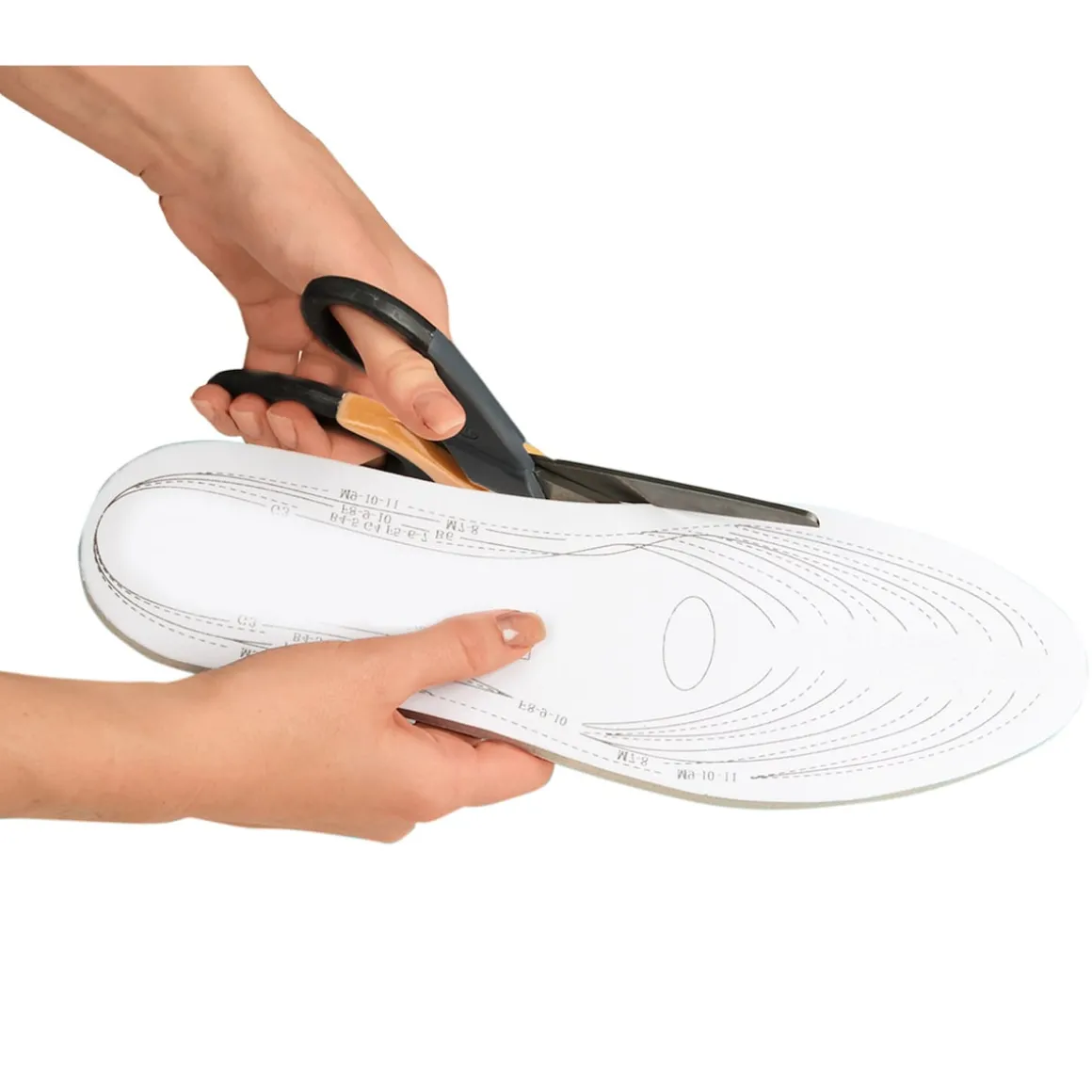 Diese speziellen Innensohlen sind aus intelligentem, weichem Schaum gefertigt, der sich wie ein bequemes Kissen unter den Füßen anfühlt, sich der individuellen Fußform anpasst und beim Gehen die Stöße angenehm abfedert. Ideal bei allgemeinen Fußschmerzen und besonders geeignet bei Plantarfasziitis, Plattfuss und Fersensporn.