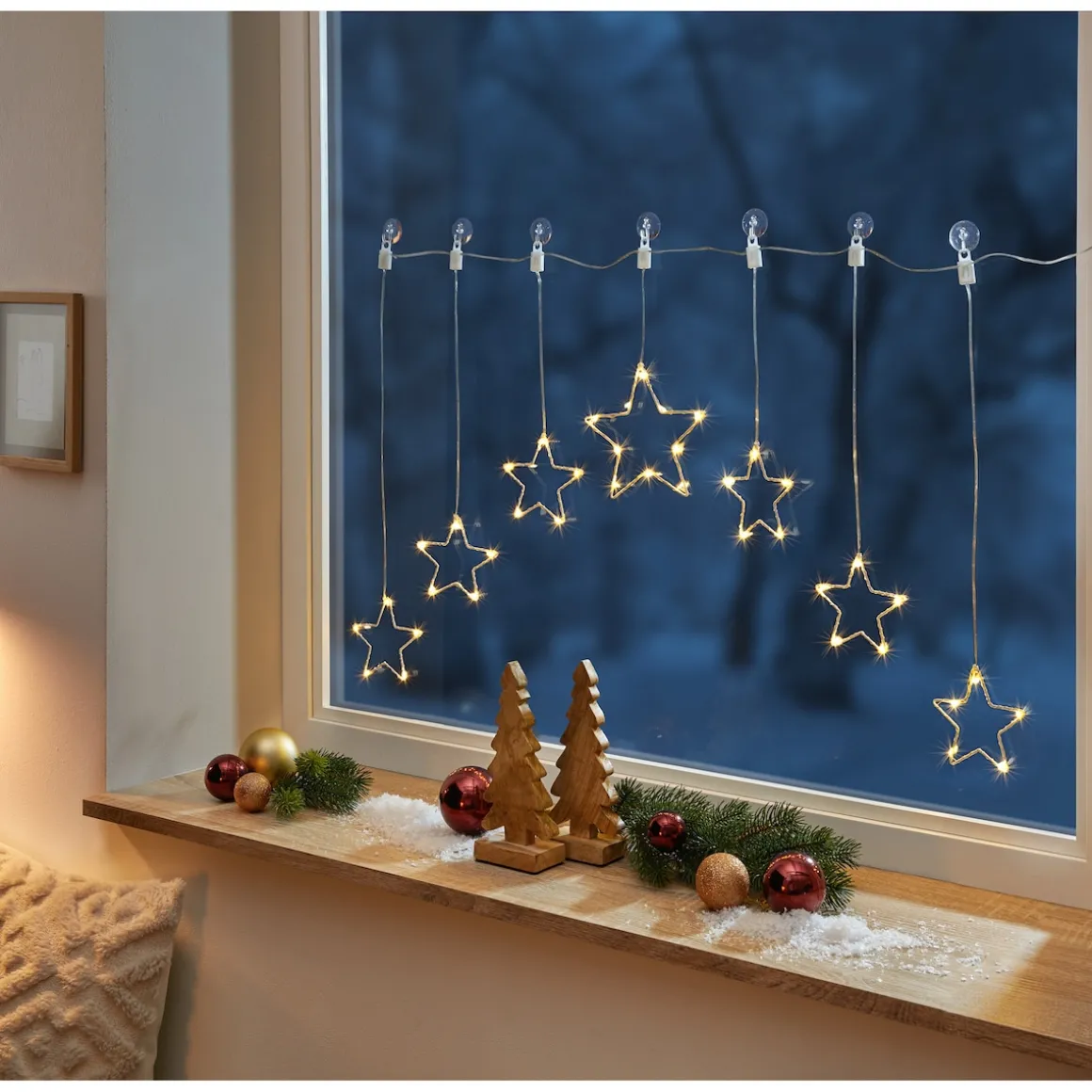 Diese filigrane Lichterkette hat den Bogen raus, wenn es um stimmungsvolle Weihnachtsdeko geht. Ihre funkelnden Sterne mit warmweißem Licht schweben regelrecht als schmückender Blickfang an Ihren Fenstern oder Türen.