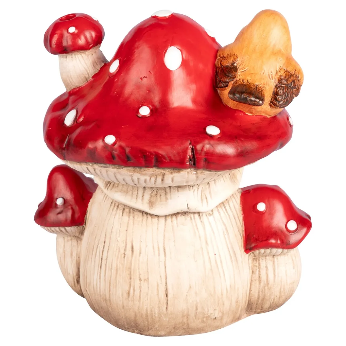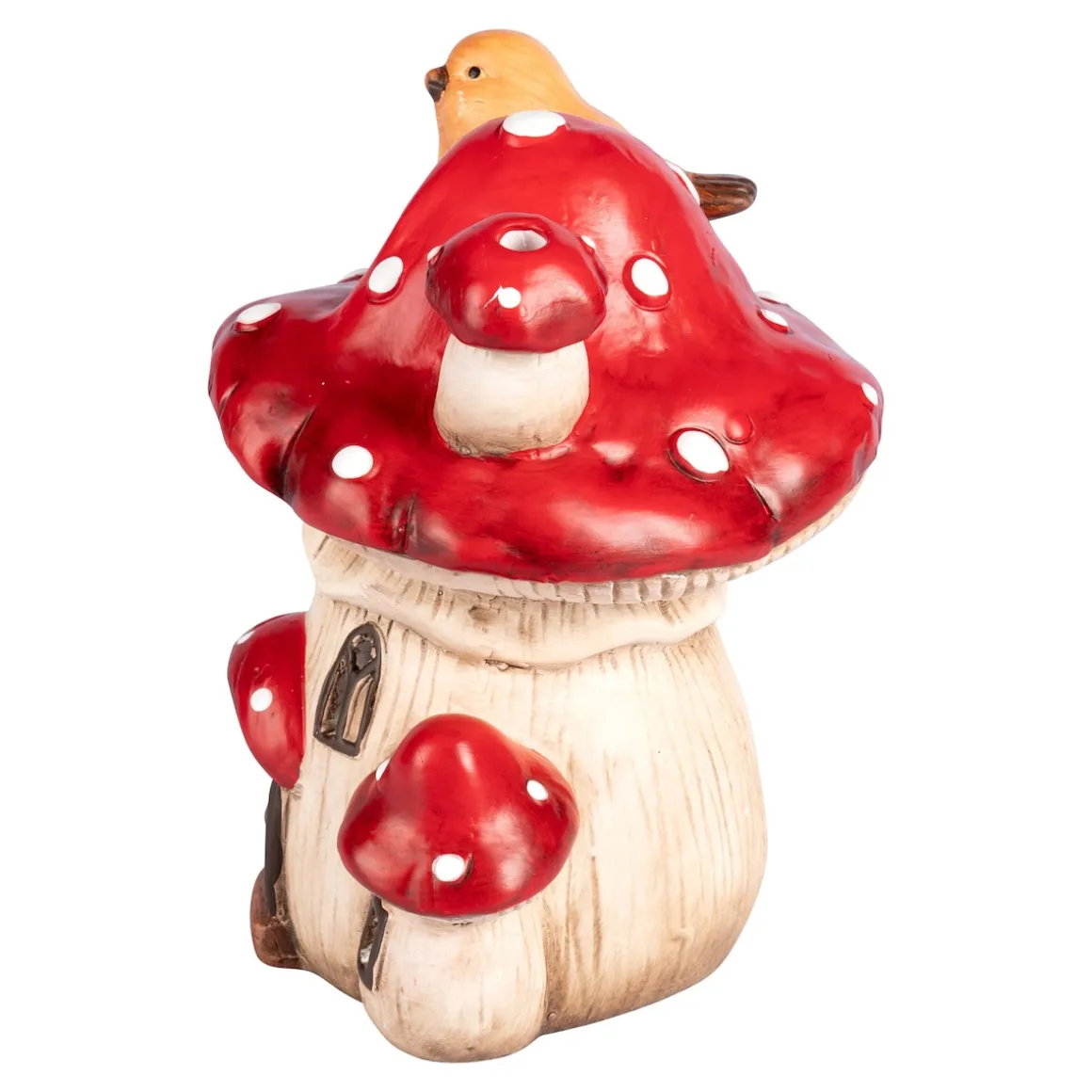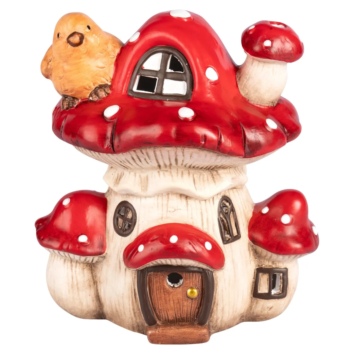 Dieses liebevoll gestaltete Pilzhaus ist nicht nur ein Deko-Element – es ist ein Stück Herbstmagie. In typischer Fliegenpilz-Optik gehalten, strahlt es von innen heraus ein angenehm warmweißes LED-Licht aus und bringt so gemütliche Stimmung in Ihr Zuhause.
