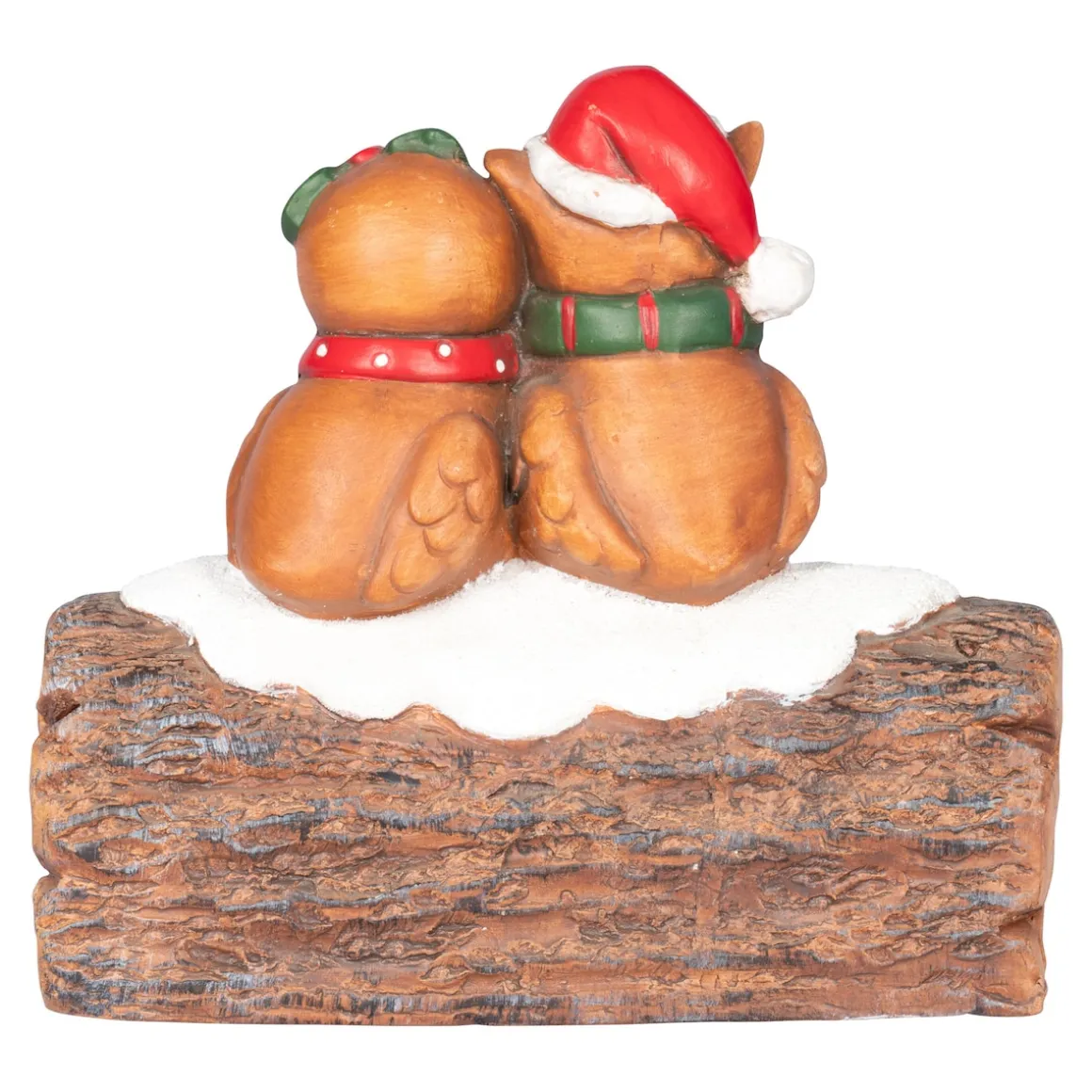 Dieses verliebte Eulenpaar weiß, wie man es sich gemütlich macht! Dem Winter trotzen beide mit modischen Schals und genießen die gegenseitige Nähe ebenso wie die Wärme von unten – ihr Sitzplatz birgt nämlich ein sanftes LED-Licht.