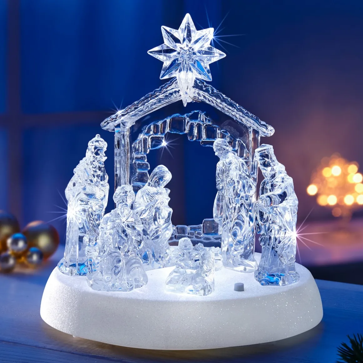 So war es nicht nur zu Zeiten Jesu Geburt. Das haben sich auch die Macher dieser modernen Variante einer Krippe gesagt und sie ganz transparent und obendrein mit LED-Beleuchtung und 2 weihnachtlichen Melodien ausgestattet. Eine außergewöhnliche Deko, die nicht nur unter den Christbaum passt!