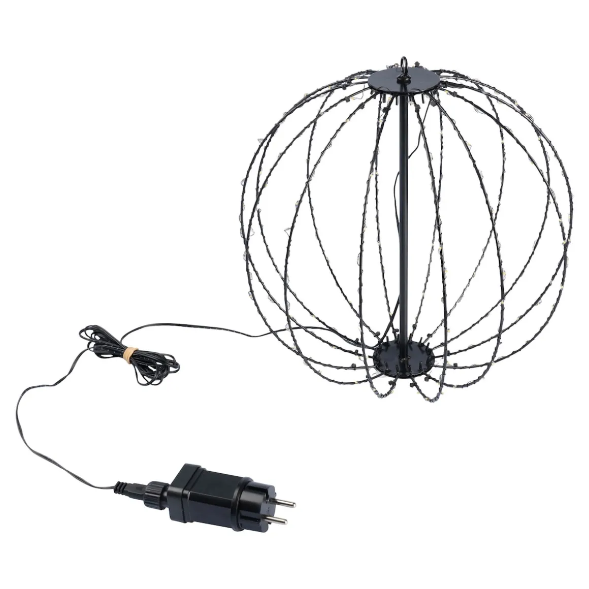 Hunderte winzige LED-Lichter bringen diese filigrane Leuchtkugel zum Strahlen und schaffen in Ihrem Garten oder auf Ihrem Balkon ein einzigartiges Ambiente. Die Stromversorgung erfolgt über Kabel und Netzstecker, nachdem Sie die Leuchte hängend platziert haben.