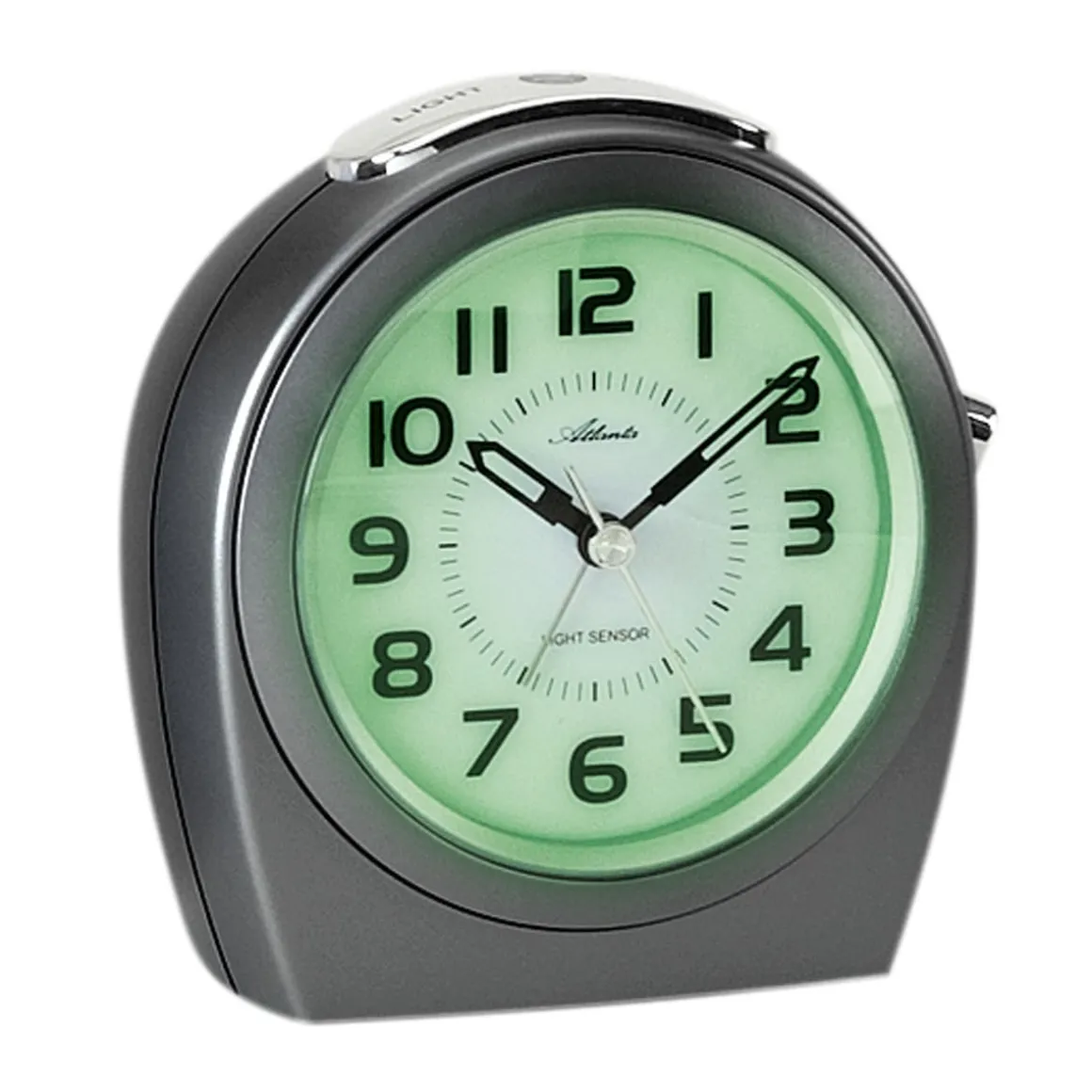 Dieser Leucht-Quartzwecker sorgt für ruhige Nächte und ein entspanntes Aufwachen. Er läuft nahezu geräuschlos – ohne störendes Ticken – und besitzt einen fließenden Sekundenzeiger. Die Beleuchtung schaltet sich automatisch bei Dämmerung ein, kann bei Bedarf aber auch manuell gesteuert werden. Besonders praktisch: die Schlummertaste, die mehrfach gedrückt werden kann. Nach ca. 4 Minuten ertönt das Alarmsignal erneut – perfekt für alle, die morgens noch ein paar Minuten länger brauchen.