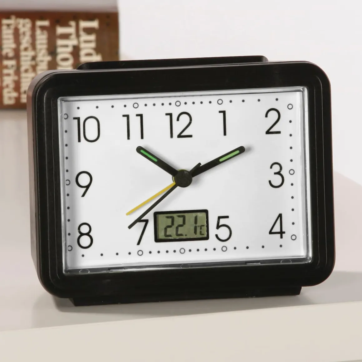 Ein echter Klassiker: Der nachtleuchtende Wecker! Dieser ist auch noch sagenhaft günstig. Er gibt die Raumtemperatur an. Zifferblatt und Zeiger leuchten in der Nacht.