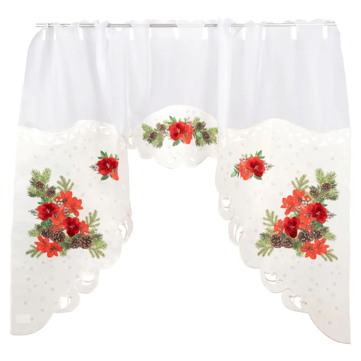 Mit ihren imposanten Blüten ist die Amaryllis ein beliebtes Weihnachtssymbol. Lassen Sie in diesem Sinne auch Ihr Zuhause gebührend weihnachtlich aufblühen: Halb bestickt, halb bedruckt veredelt sie als Bistrogardine das Fenster.