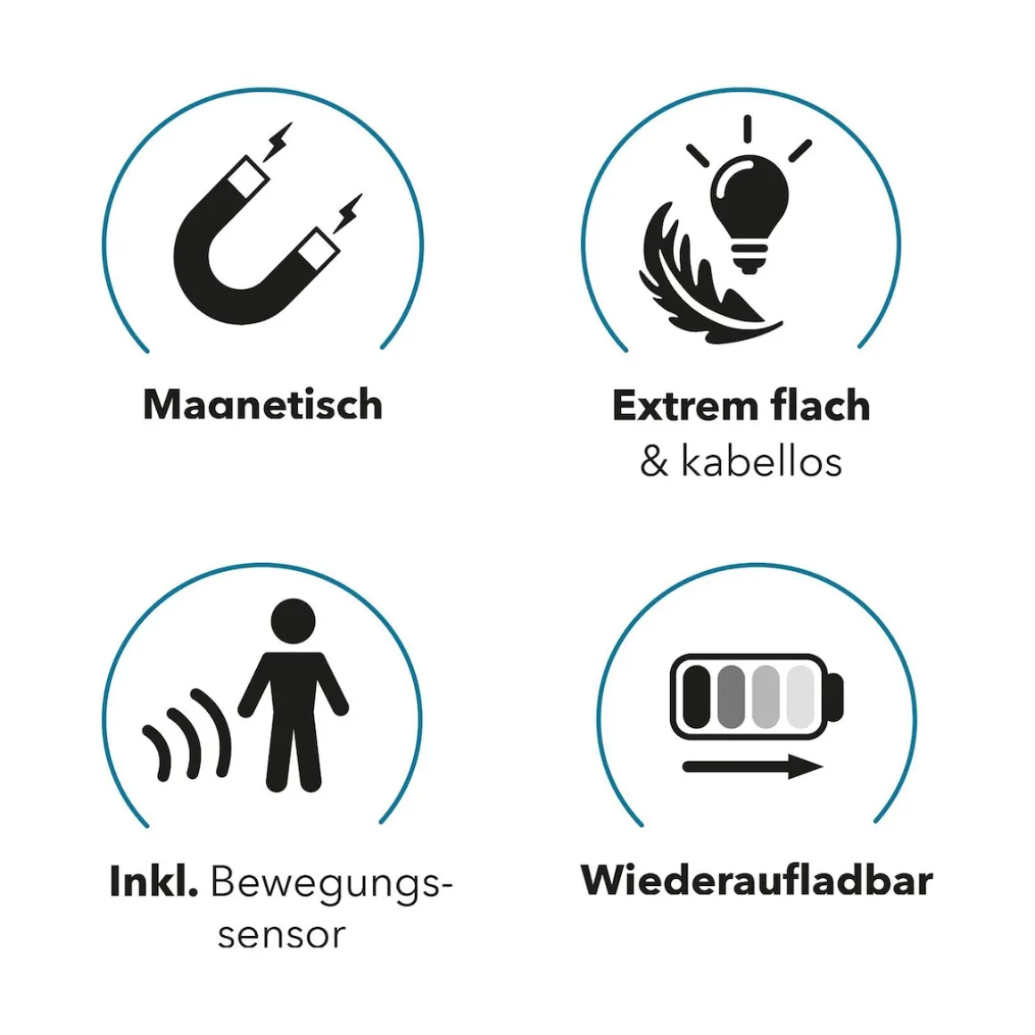 Kabellos, leicht und überall einsetzbar, passt sie durch ihr extra langes und extrem flaches Design selbst in Schubladen. Die ultrahellen, leistungsstarken und langlebigen LEDS bringen mit höchster Leuchtkraft Licht in jede dunkle Ecke.