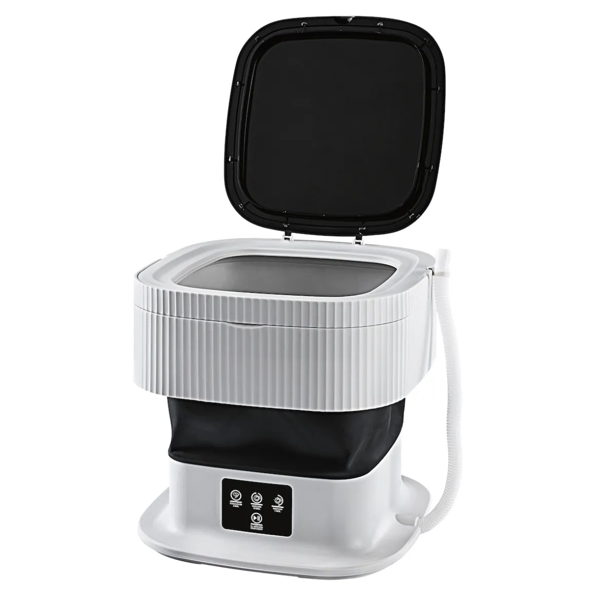 Ideal für unterwegs oder kleine Wäschen! Schonend, leise und wassersparend – perfekt auch für die Reinigung empfindlicher Textilien. Mit Touchscreen und 2 Waschmodi. Platzsparend zusammenfaltbar. Zuladung: 0,5–1 kg. 18 W.