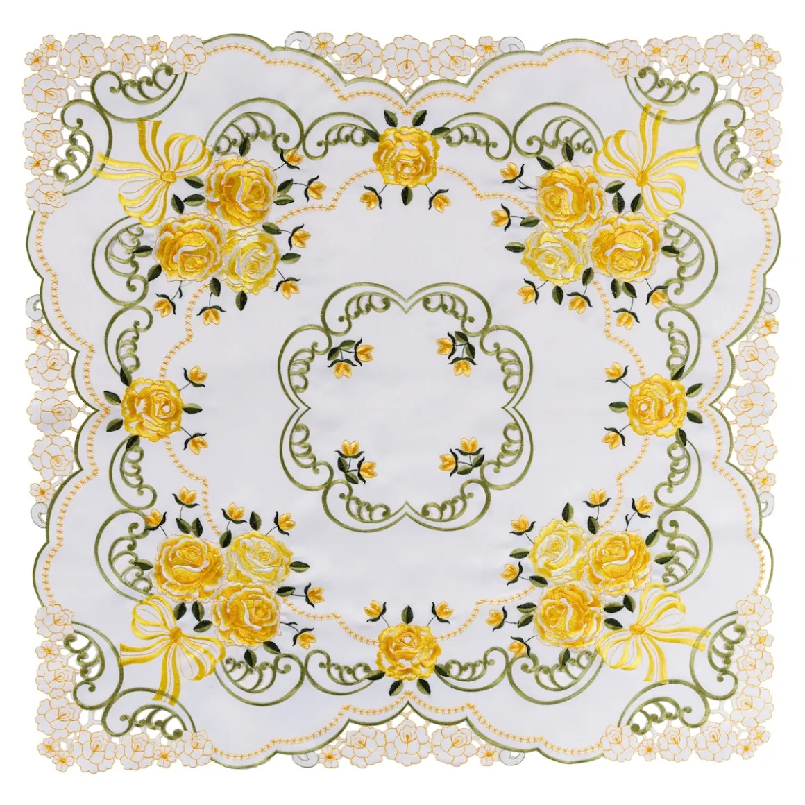 Diese Mitteldecke verzaubert mit ihrem filigran bestickten Rosenmuster und bringt einen Hauch von Romantik in Ihr Zuhause. Ob für festliche Anlässe oder den täglichen Genuss – die edle Tischdecke setzt stilvolle Akzente und fügt sich harmonisch in jede Einrichtung ein. Das hochwertige Material sorgt für eine lange Haltbarkeit und pflegeleichte Nutzung. Ein echter Blickfang für Ihren Tisch!