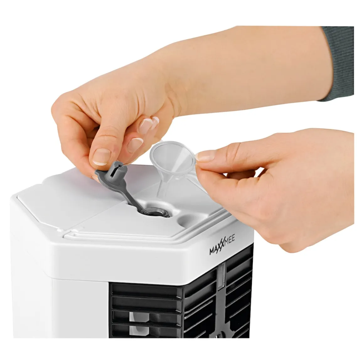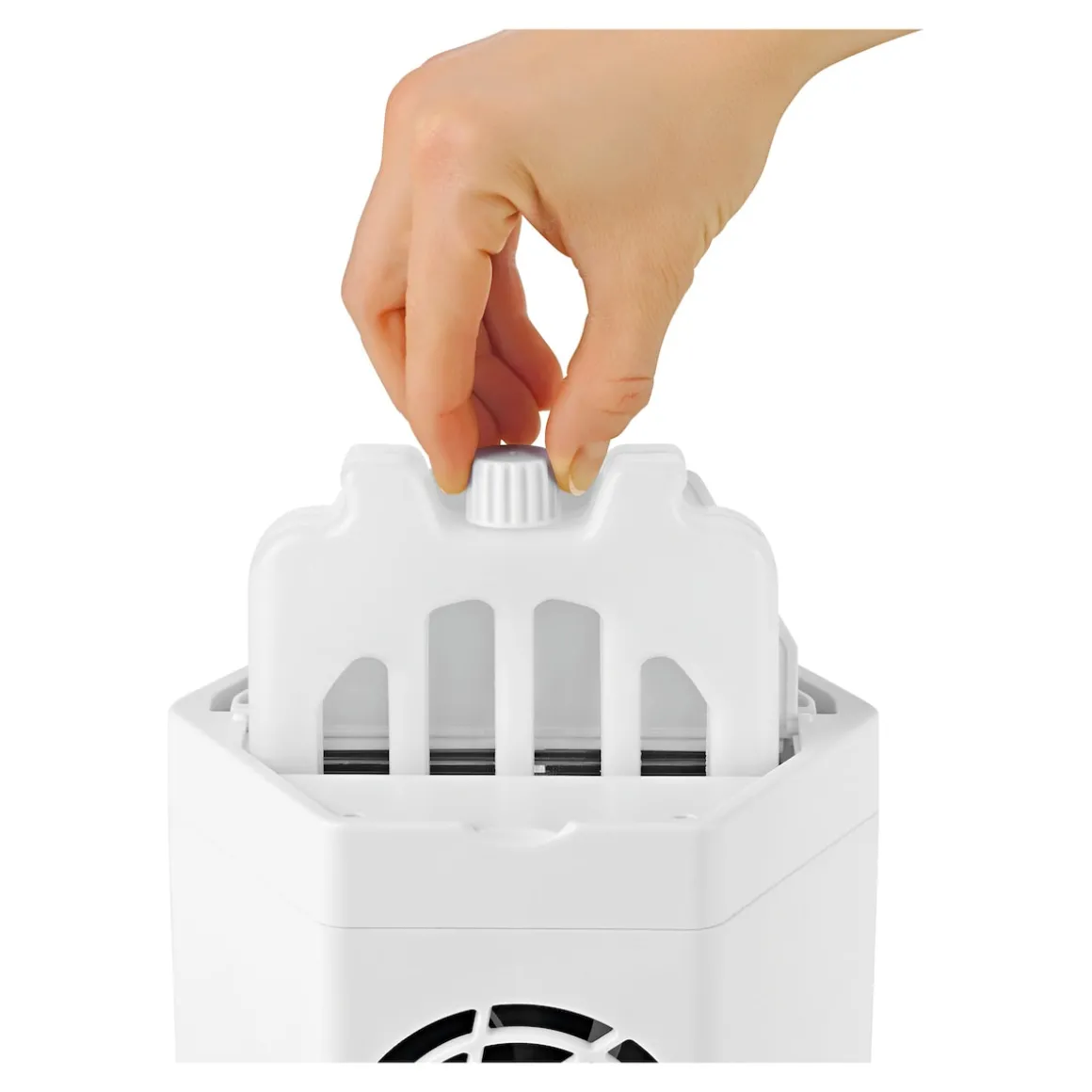 Wenn die Hitze im Sommer zu drückend wird, sorgt er für erfrischende Abhilfe: Der mobile Luftkühler mit Befeuchtungsfunktion kann wie ein klassischer Ventilator mit zuschaltbarem Wassernebel verwendet werden. An besonders heißen Tagen sorgen die austauschbaren Kühlakkus für zusätzliche Kühlung. Auch im Schlafzimmer ideal – dank des flüsterleisen Betriebs werden Sie garantiert nicht geweckt! Doppelt genial: Im Winter hilft er bei trockener Heizungsluft. Mit praktischem Tragegriff für den einfachen Transport. Betriebsdauer: bis zu 2,5 Stunden. 4 W, Betrieb per USB-Kabel.