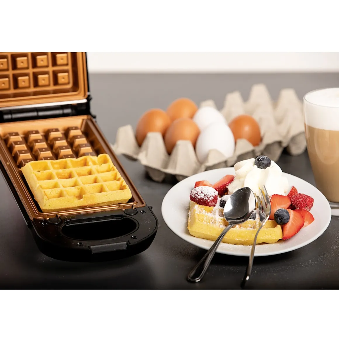 Statt stundenlangem Kochen kommt heute der LIVINGTON FlipSwitch zum Einsatz! Dieser um 180° drehbare Multifunktionsgrill wird einfach mit Ihren Lieblingszutaten befüllt und verwandelt sie im Nu zu köstlichen Gerichten wie knusprigen Pizzaschnitten, schmackhaften Spinat-Käse-Omelettes oder veganen Panini-Burgern. Und das alles blitzschnell, ohne Öl und absolut gleichmäßig von beiden Seiten, dank der beiden 800 W-Heizelemente und der automatischen Temperaturregelung: Die Hitze wird perfekt gehalten. Die 2-Komponenten-Keramikbeschichtung mit Lotus- Effekt verhindert ein Ankleben und erleichtert so die Reinigung. Durch sein handliches Format findet er in jeder Küche Platz.
