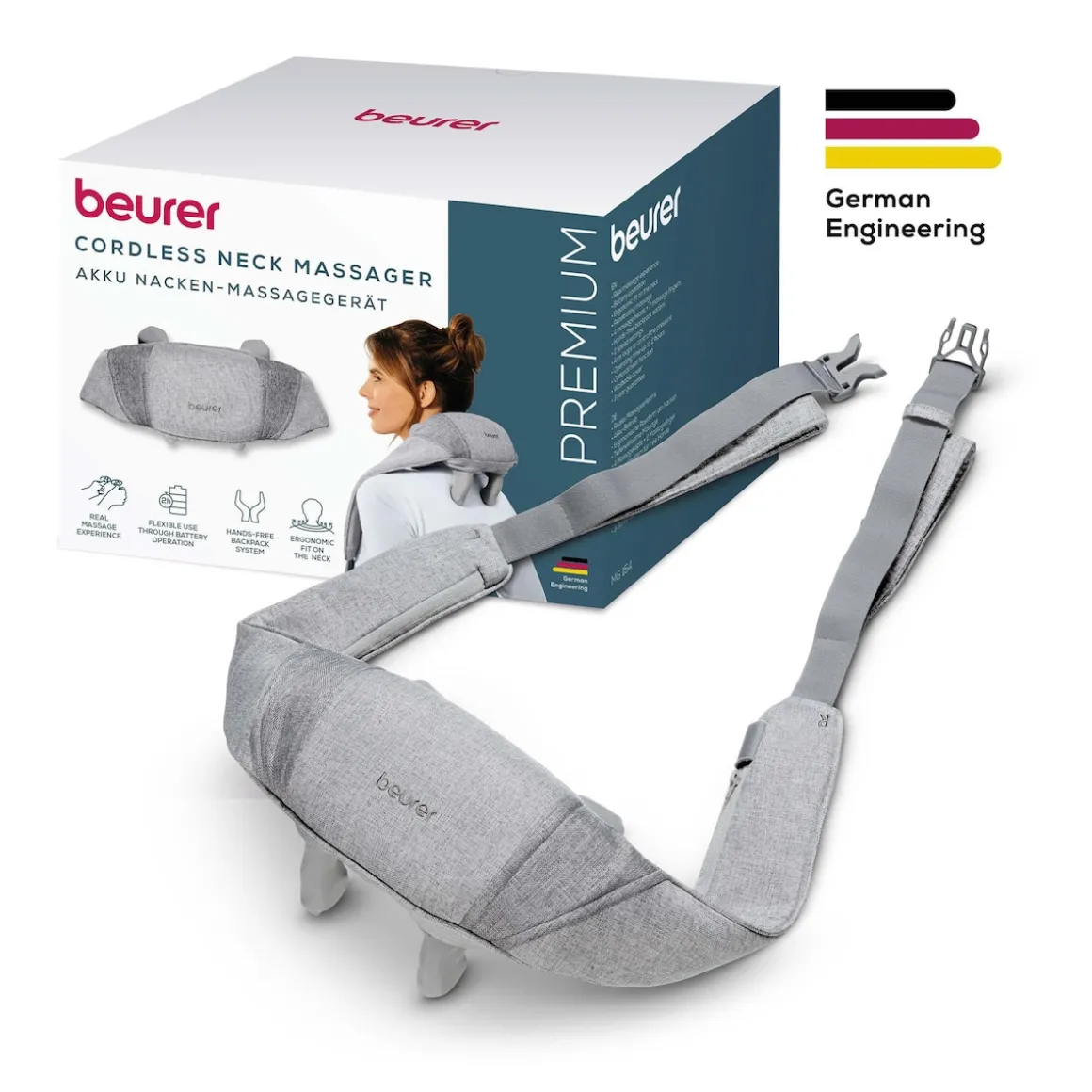 Reales Massageerlebnis dank handsimulierender Massageköpfe. Praktisch: das Rucksacksystem sorgt für freie Hände. Ergonomische Passform am Nacken für mehr Komfort und Entspannung. Tiefenwirksame Massage mit 4 Massageköpfen und 2 Massagefingern. Zwei Geschwindigkeitsstufen. Zuschaltbare Wärmefunktion. Leistungsstarker Lithium-Ionen-Akku mit automatischer Abschaltfunktion. Bezug abnehm- und waschbar bei 30°C.