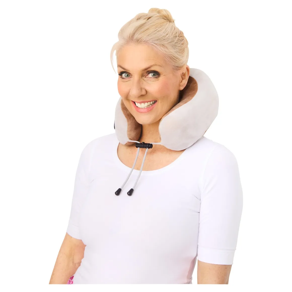 Verspannungen im Nacken begleiten Sie auch auf Reisen? Dann ist dieses Massagekissen ein Muss für Ihr Gepäck: Fix um den Hals gelegt, kann es im Bus, in der Bahn oder auch im Büro fix Ihre Muskeln entspannen und Nackenschmerzen lindern. Infrarot-Wärme und 3 wohltuende Massagefunktionen – von Vibration, Kneten oder beides auf einmal – lassen sich auf Knopfdruck ebenso wählen wie 3 Geschwindigkeitsstufen. Mit Timer-Funktion. Inkl. USB-Ladekabel.