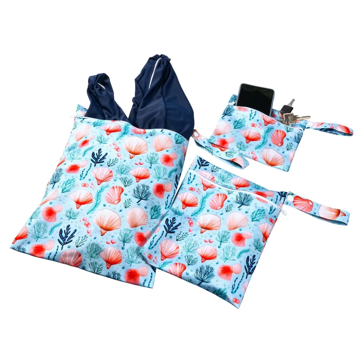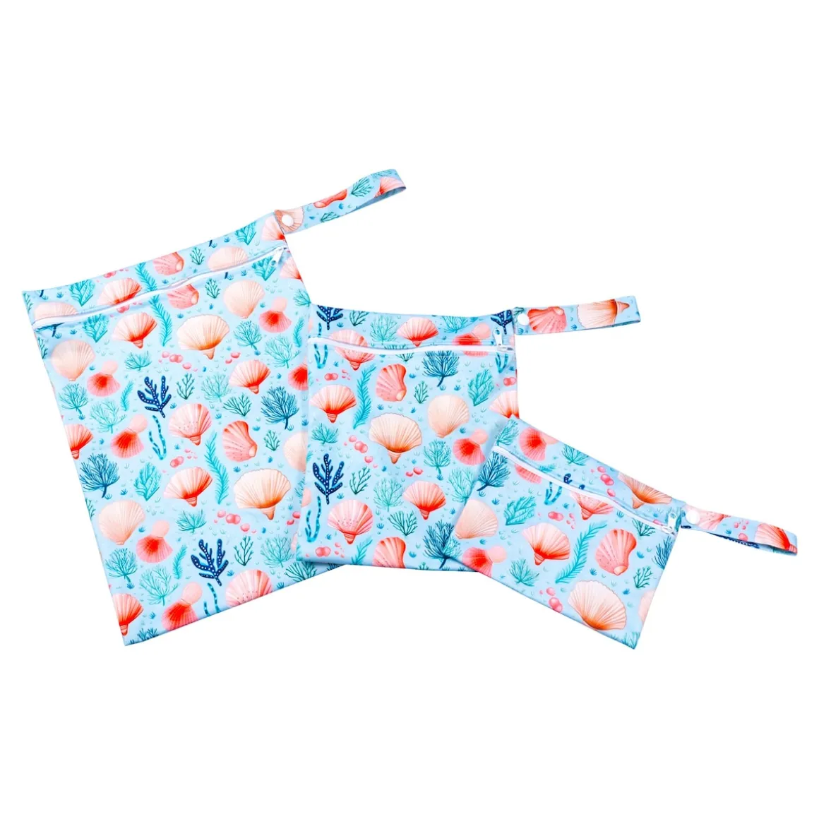 Dieses Nassbeutel-Set im Muschel-Design punktet mit 3 praktischen Größen – ideal, um nasse Badesachen sicher zu verstauen oder Ihre Dinge im Koffer perfekt zu sortieren. Mit Schlaufe zum Tragen und Aufhängen.