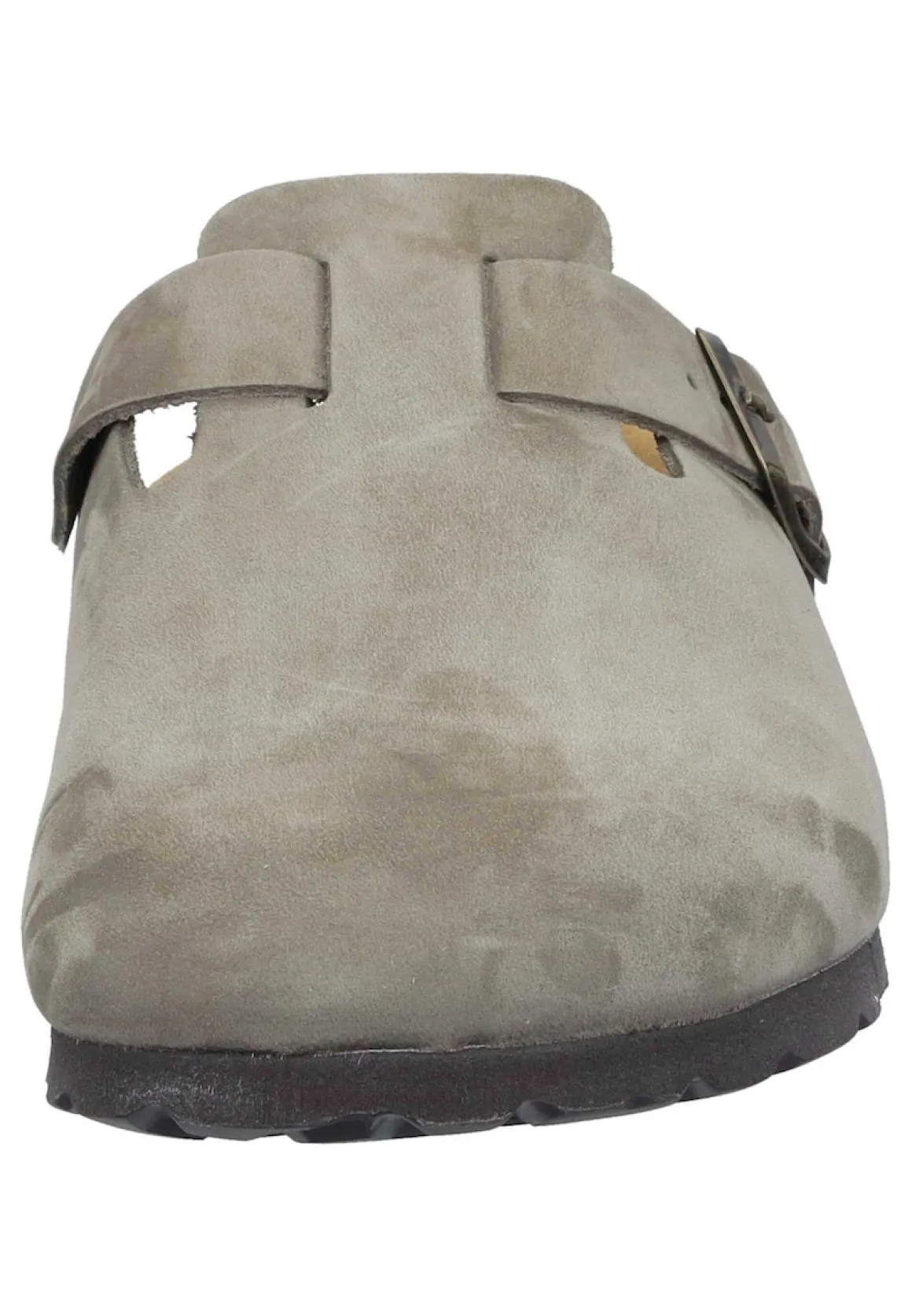 Bei diesem Produkt handelt es sich um einen Schuh aus der Kategorie Clogs ohne Absatz für Herren. Als Obermaterial wurde Nubukleder verwendet und im inneren Bereich des Schuhs wurde ungefüttert und weiche Lederdecksohle, gepolstertes Naturform-Korkfußbett verarbeitet. Die Schuhweite dieses Artikels ist Weite G und somit normal. Als Verschlussart wurde Schlupfschuh gewählt und die Leichtzellsohle rundet das Produkt ab. Der Artikel fällt normal aus, bitte die gewohnte Größe bestellen. – Schuhweite: Weite G –