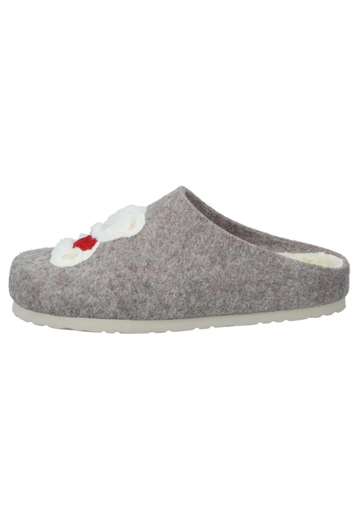 Bei diesem Produkt handelt es sich um einen Schuh aus der Kategorie Klassische Hausschuhe für Damen. Als Obermaterial wurde Filz verwendet und im inneren Bereich des Schuhs wurde ungefüttert und Schurwolldecksohle verarbeitet. Die Schuhweite dieses Artikels ist normal und somit standard. Als Verschlussart wurde Schlupfschuh gewählt und die Leichtzellsohle rundet das Produkt ab. Der Artikel fällt normal aus, bitte die gewohnte Größe bestellen. – Schuhweite: normal –