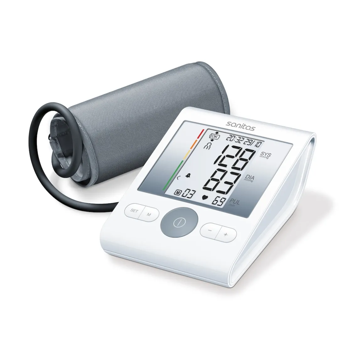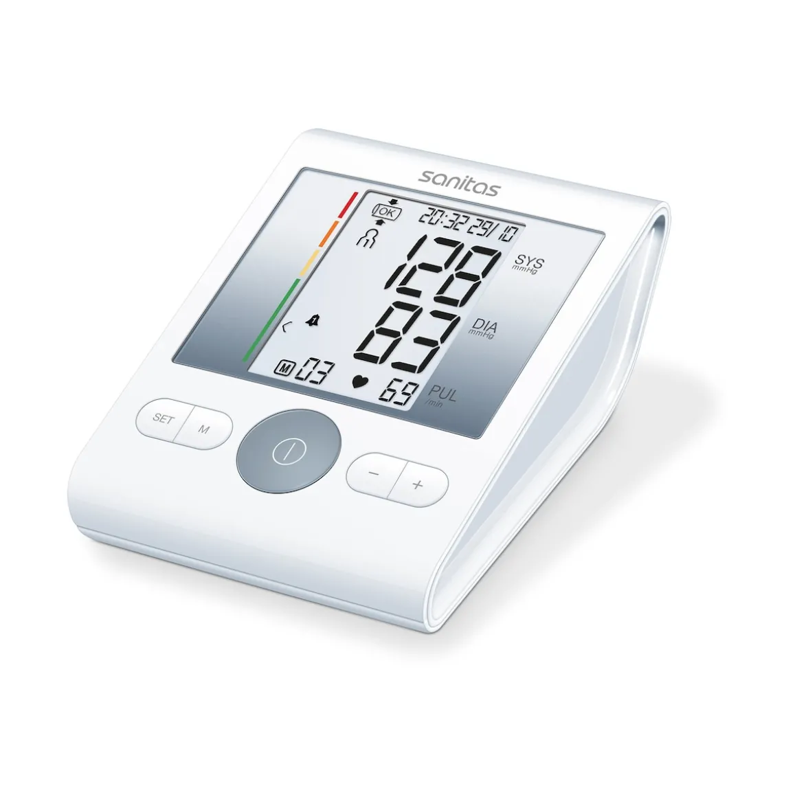 Optimale Blutdruckkontrolle mit dem Oberarm-Blutdruckmessgerät SBM 22. Die Manschettensitzkontrolle zeigt auf einen Blick, ob die Manschette straff genug am Oberarm angebracht ist oder nicht. Die integrierte Alarmfunktion erinnert zuverlässig an die regelmäßige Blutdruckmessung. Die farbige Einstufung der Messergebnisse gibt eine anschauliche Rückmeldung über die Blutdruckwerte. Mit praktischer Aufbewahrungstasche.