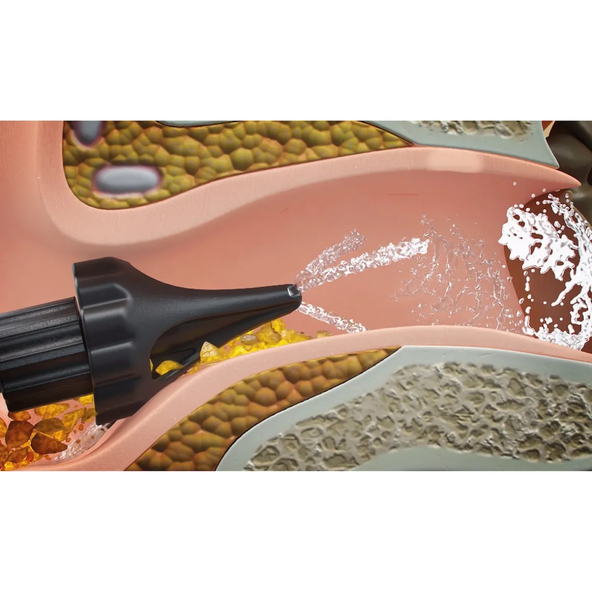 Unser innovativer Ohrenreiniger setzt auf einen dreifachen Massagestrahl, der auf Knopfdruck Ohrenwachs sanft entfernt. Kein Hineindrücken, keine Schmalzpfropfen – nur reine Ohren.
