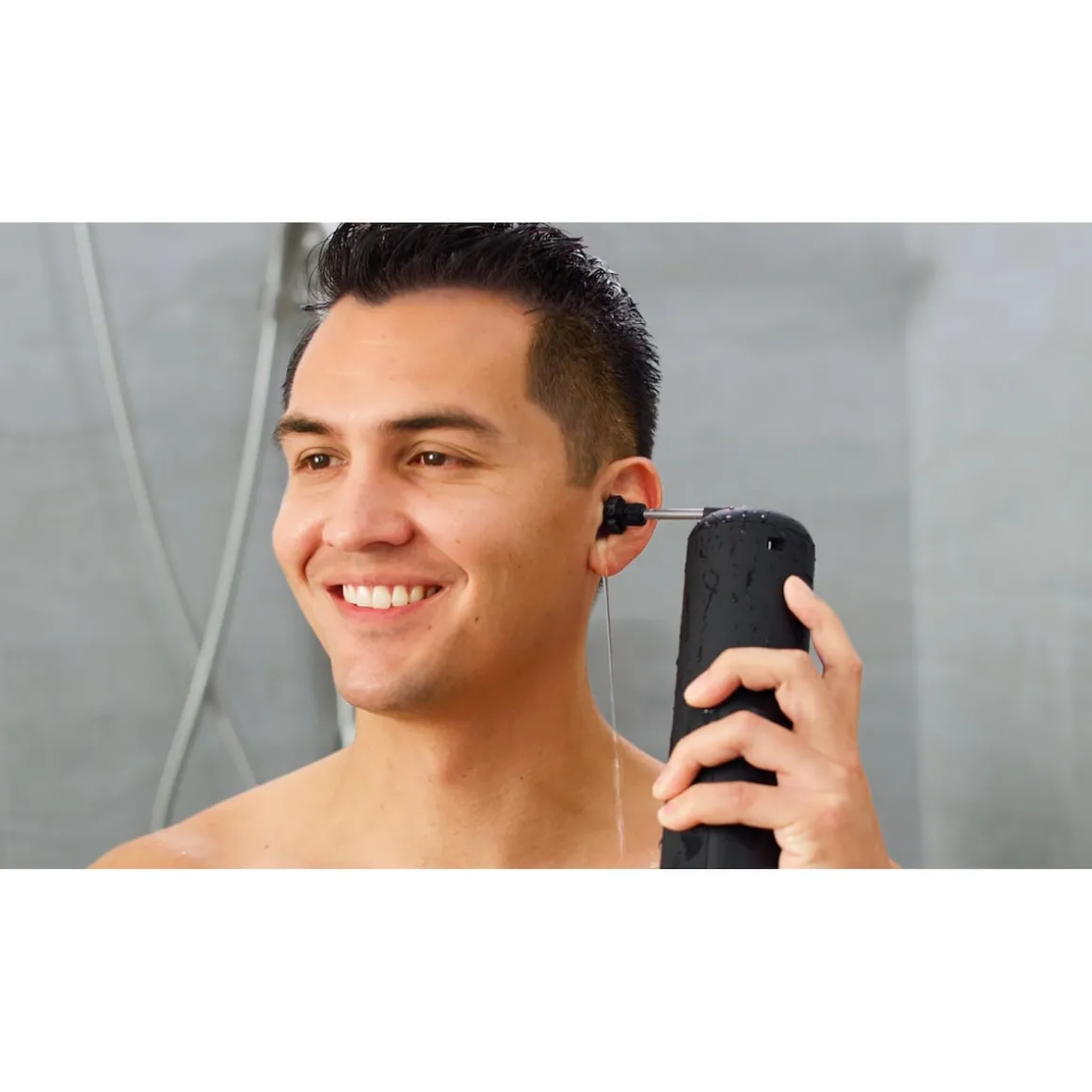 Die wasserbetriebene Ohrendusche ist bequem per USB aufladbar, IPX5 wasserfest und perfekt für die Anwendung unter der Dusche.