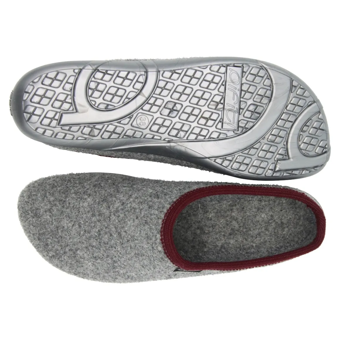 Die Kombination aus nachhaltigem, hochwertigem Wollfilz und rutschhemmender Barfuß-Sohle sorgt den ganzen Tag über für ein angenehmes Fußklima.