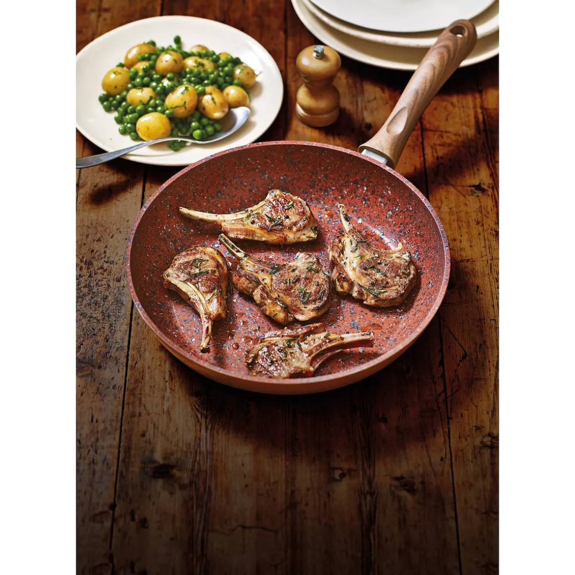 Mit dem innovativen 7-schichtigen-Aufbau werden perfekte Kochergebnisse in Ihrer Küche zum Kinderspiel. Das Geheimnis der Pfanne liegt in Ihren Schichten. Die Aluminium-Form wird mit einer extra starken Stahl-Einlage kombiniert. Im Kern ist eine robuste Stein-Beschichtung für unvergleichliche Haltbarkeit und Hitzespeicherung. Kupfer veredelt die Steinschicht für perfekte Hitzeverteilung. Und 3 Lagen hochwertige Anti-Haft-Beschichtung runden diese sensationelle Pfanne ab.
