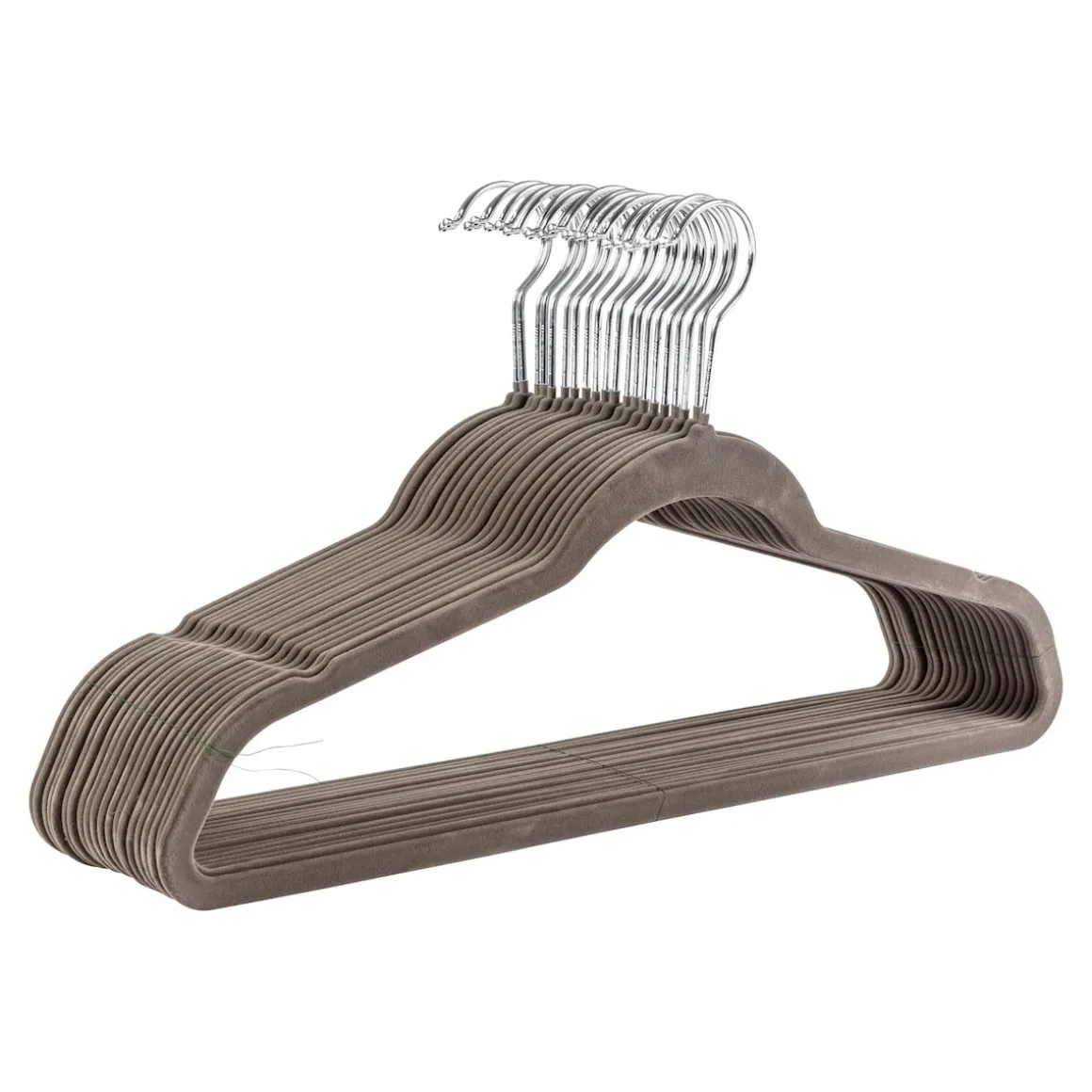Diese extra schmalen Kleiderbügel schaffen mehr Platz in Ihrem Kleiderschrank. Sie eignen sich sowohl für Hemden und Jacken als auch für Hosen, Röcke und Tops mit Spaghettiträgern. Die rutschfeste Beschichtung hält alles formstabil und platzsparend an Ort und Stelle.