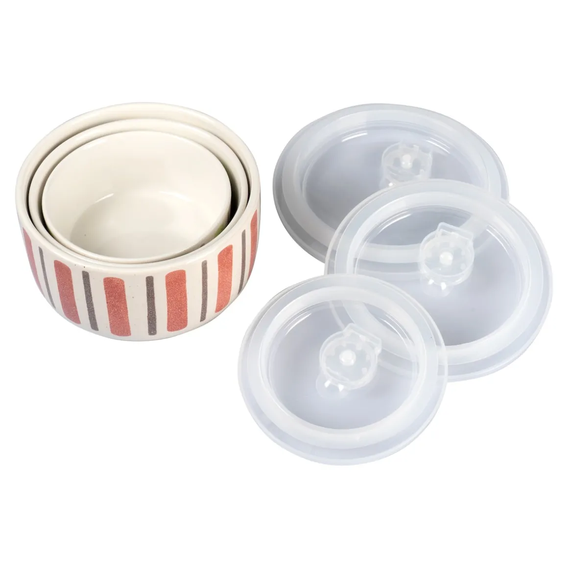 Dieses stilvolle Schüssel-Trio aus Porzellan ist ein wahres Multitalent in Ihrer Küche: Es eignet sich perfekt zum Erwärmen in der Mikrowelle, zum eleganten Servieren am Tisch und zur Aufbewahrung Ihrer Köstlichkeiten. Die Deckel halten den Inhalt frisch und geschmackvoll.