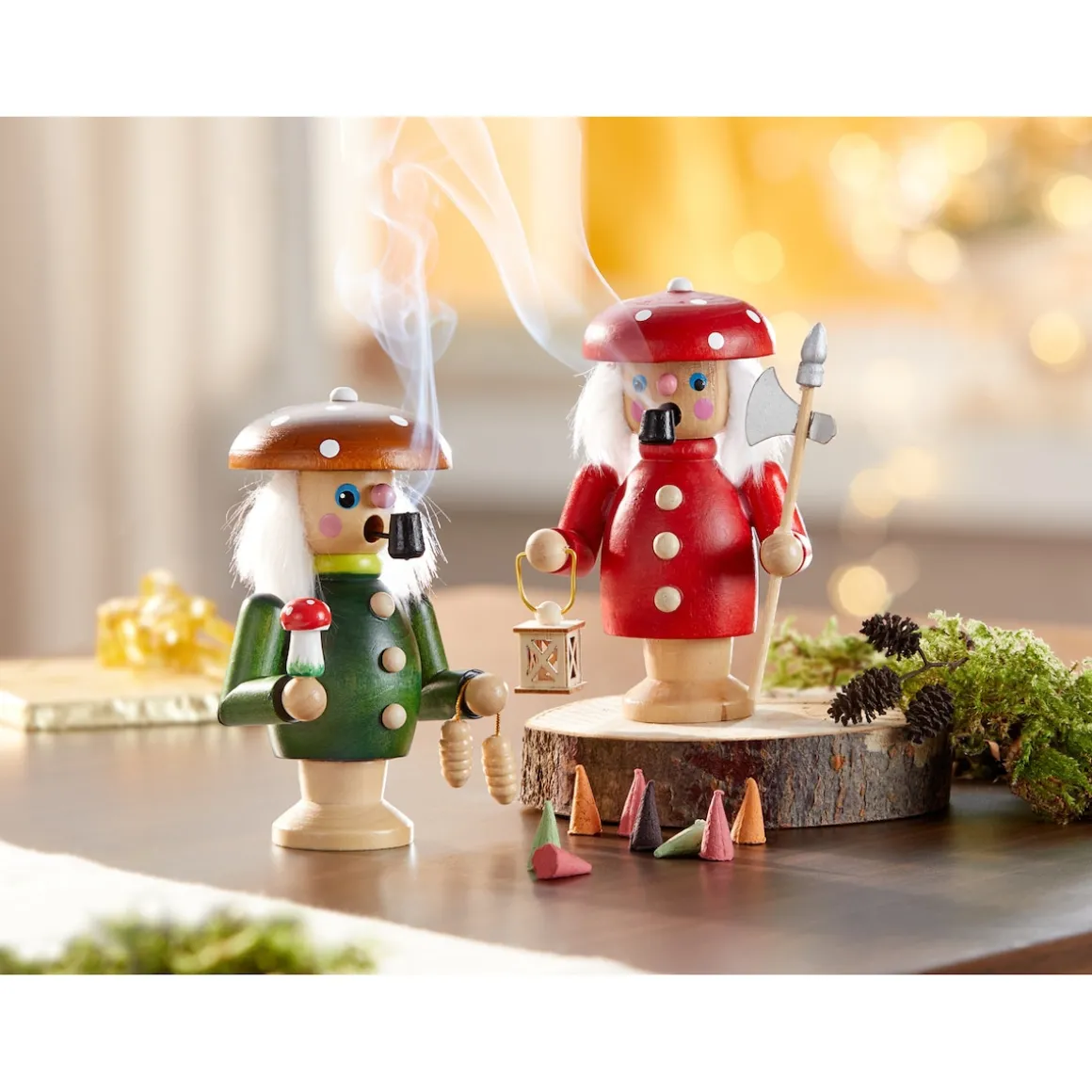 Räuchermännchen und winterliche Räucherdüfte gehören als traditioneller Brauch zur Weihnachtszeit einfach dazu! Diese beiden Gesellen sind besonders liebevoll gearbeitet: Mit ihren süßen Pilzhütchen und Pfeifen im Mund ziehen Sie jeden Weihnachtsfan in den Bann.