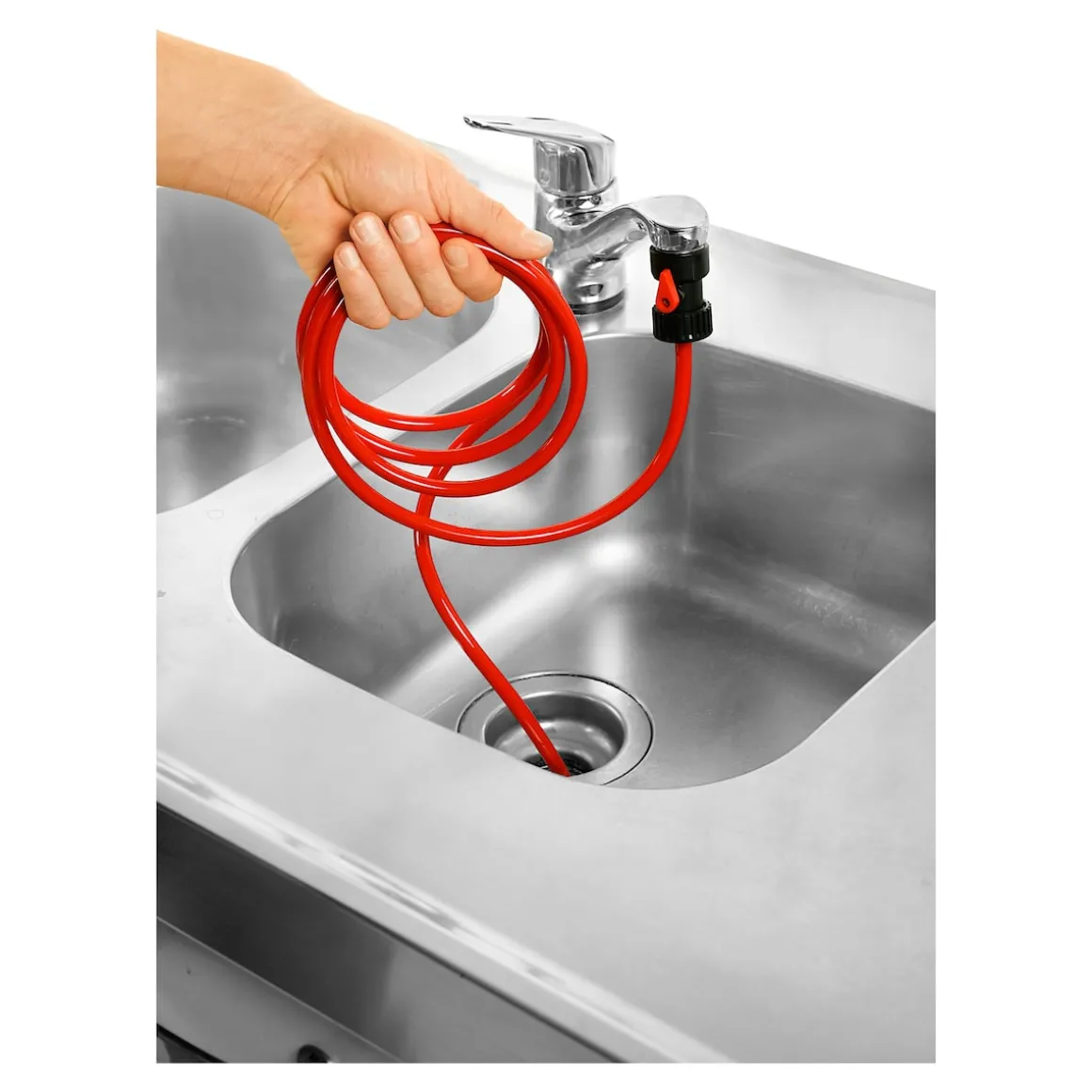 Im Haushalt werden zur Reinigung verstopfter Rohre meist chemische Reiniger verwendet, doch das funktioniert nicht immer. Wesentlich effektiver und umweltfreundlicher erfolgt die Reinigung verstopfter oder verschmutzter Abflussrohre mit dem Rohrreinigungsschlauch. Der Hochdruck-Reiniger für Küche und Bad kommt ohne chemische Zusätze aus und verwendet ausschließlich Wasser. Dazu wird der Schlauch an den Wasserhahn angeschlossen, in das Abflussrohr geschoben und das Wasser aufgedreht. Durch den 2,4 Meter langen Schlauch wird der Wasserdruck so stark gebündelt und verstärkt, dass damit selbst hartnäckige Verstopfungen und Schmutz kraftvoll weggespült werden. Mit den im Lieferumfang enthaltenen Anschlussadaptern passt der Rohrreinigungsschlauch auf alle gängigen Wasserhähne und kann sogar an den Gartenschlauch oder Duschschlauch angeschlossen werden.