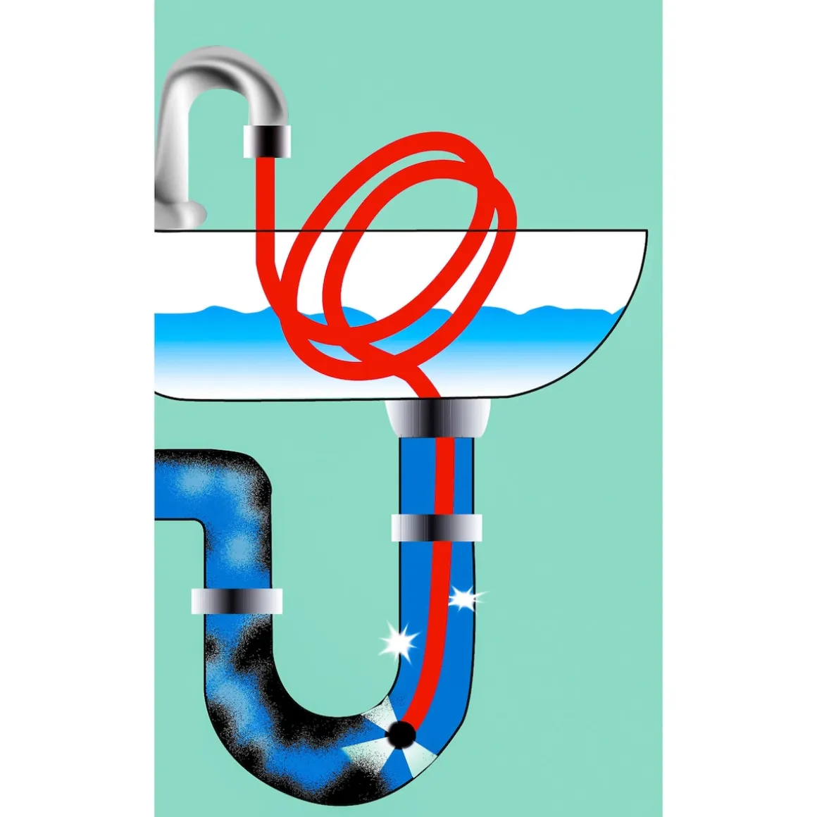- Verstopfungen werden mit Wasserdruck gelöst