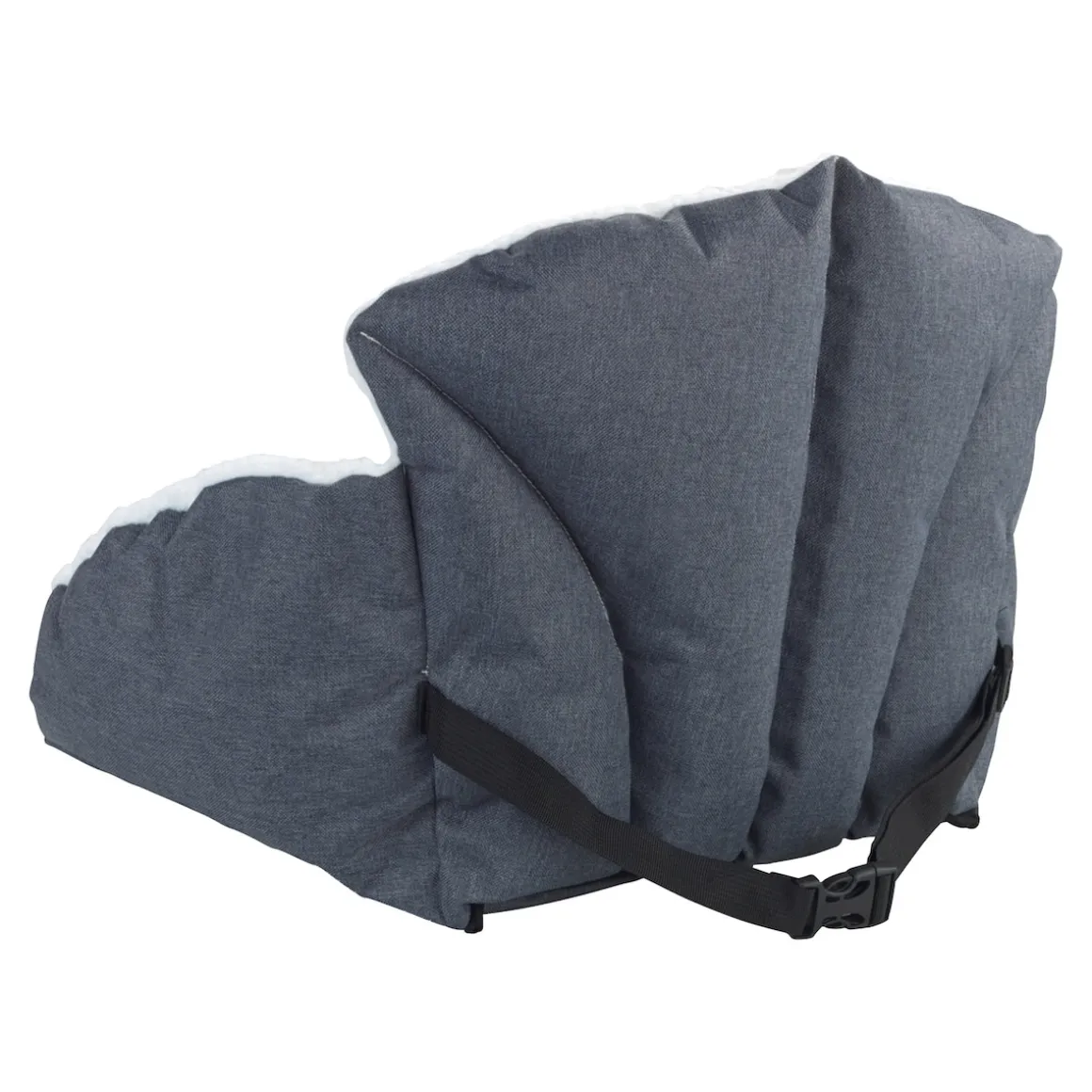 Nie wieder ein kalter Rücken! Das muschelförmige Wendekissen gewährleistet ganzjährig optimalen Sitzkomfort. Winterseite mit kuscheligem Lammfell-Imitat und Sommerseite aus strapazierfähigem, wasserabweisendem Oxford-Gewebe. Mit Gurt zum fixieren.