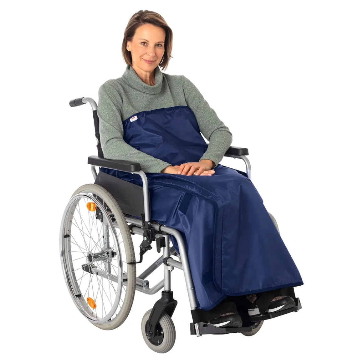 Die Marine Wickeldecke bietet Ihnen optimalen Schutz und Komfort für den Aufenthalt im Freien. Dank des wärmenden Webpelzes und des winddichten Nylons bleiben Sie warm und behaglich. Die sichere Befestigung verhindert das Wegrutschen, während die offene Fußpartie ein einfaches Verlassen des Rollstuhls ermöglicht. Diese Decke ist ein idealer Begleiter für jeden Rollstuhlfahrer unterwegs.