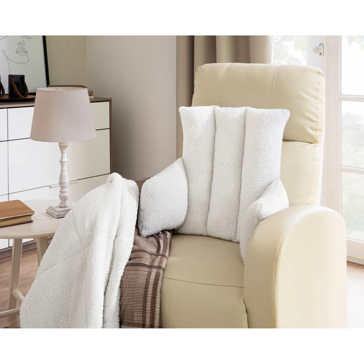 Unser Rückenkissen bietet puren Sitzgenuss. Die kuschelige Seite wärmt und stützt sanft, während die glatte Seite für Anschmiegsamkeit sorgt. Erleben Sie entspannten Komfort in Stuhl und Sessel – so wird Sitzen zum Genuss!