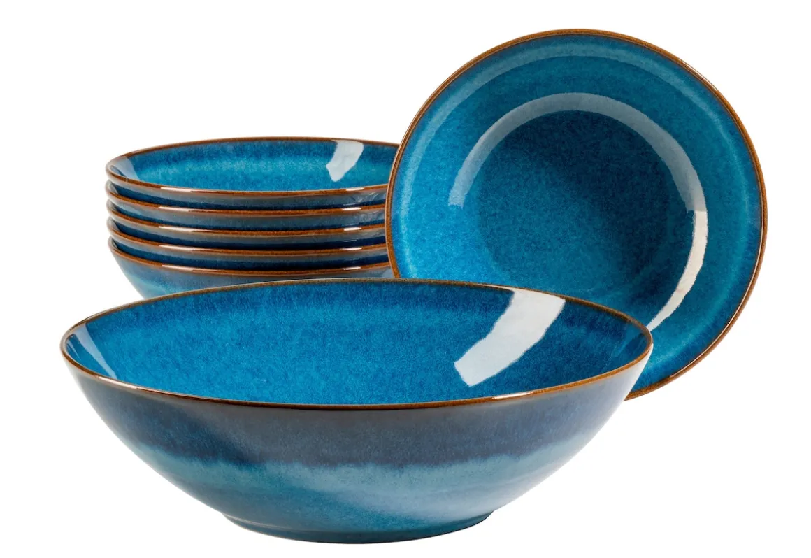 Feiner Salzgeruch in der lauwarmen Brise, ein glitzerndes Schauspiel auf der Wasseroberfläche, die Sorglosigkeit, die Sie beschwingt durch den Tag trägt: Die Keramikgeschirr-Serie „Ossia“ der österreichischen Traditionsmarke MÄSER bringt dieses pure mediterrane Lebensgefühl auf Ihren Esstisch. Schlichte, moderne runde Coupe-Formen aus hochwertiger und robuster Keramik, gepaart mit einer charakteristischen unregelmäßig schimmernden Glasurtechnik, die jedes Teil zu einem Unikat mit Vintage-Anmutung macht – das ist das Geheimnis der Serie „Ossia“, die mit viel Herz in Europa produziert wird. Dieses Geschirrset wird in einer speziell für dieses Service entwickelten, vielfach getesteten Postversandverpackung aus umweltschonenden Materialien versendet. Bitte beachten Sie: Im Sinn einer objektiven Vergleichbarkeit gehen unsere Füllmengenangaben von einer randvollen Befüllung aus. Durch die spezielle unregelmäßige Glasurtechnik können leichte Farbabweichungen entstehen.