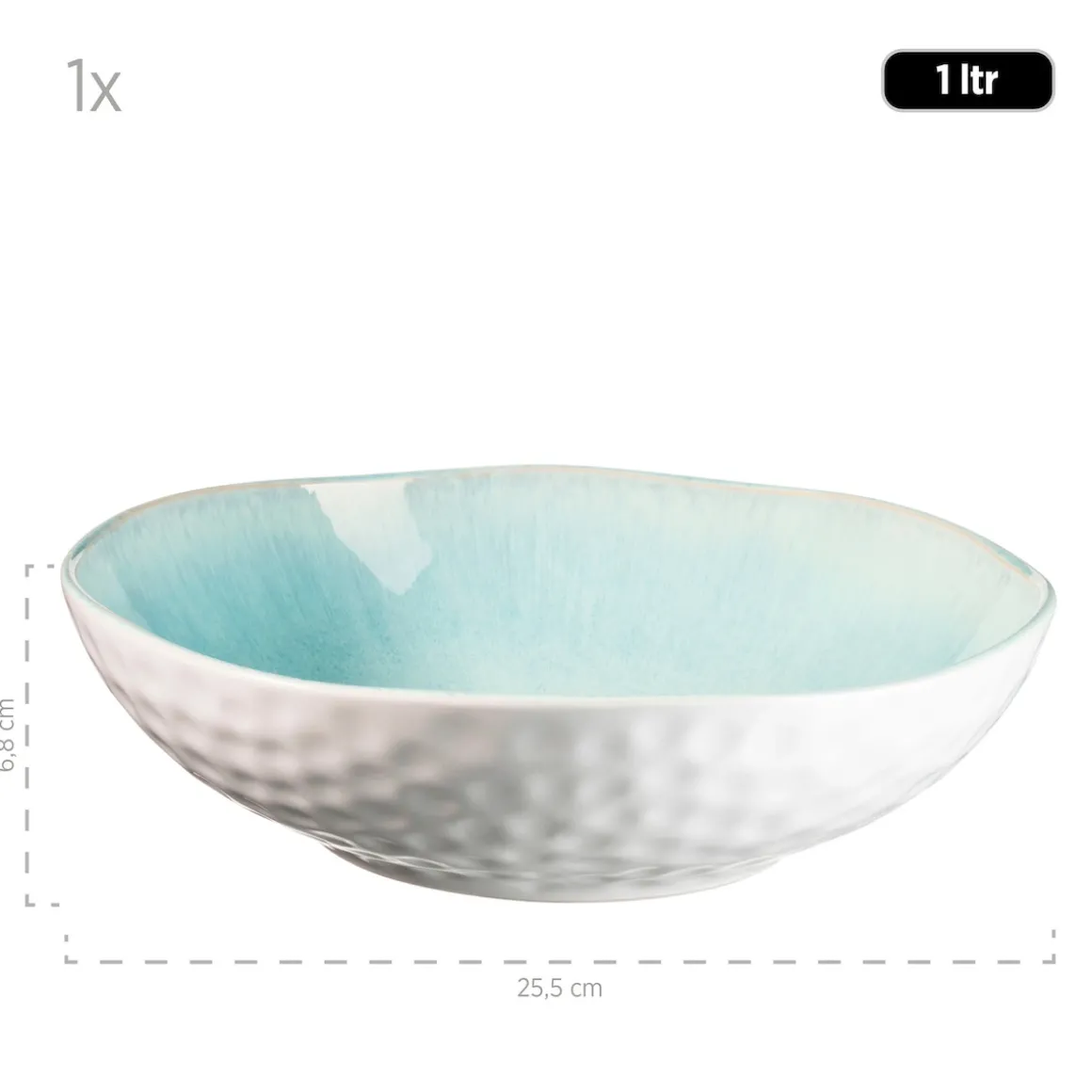 Dieses Set wird in einer vielfach auf Bruchsicherheit getesteten Transportverpackung versendet. Um eine objektive Vergleichbarkeit zu gewährleisten, beziehen sich unsere Füllmengenangaben immer auf eine randvolle Befüllung. Bitte beachten Sie: Diese Kollektion wird händisch glasiert, wodurch minimale Unebenheiten der Glasur, kleine Einschlüsse und Farbabweichungen auftreten können.
