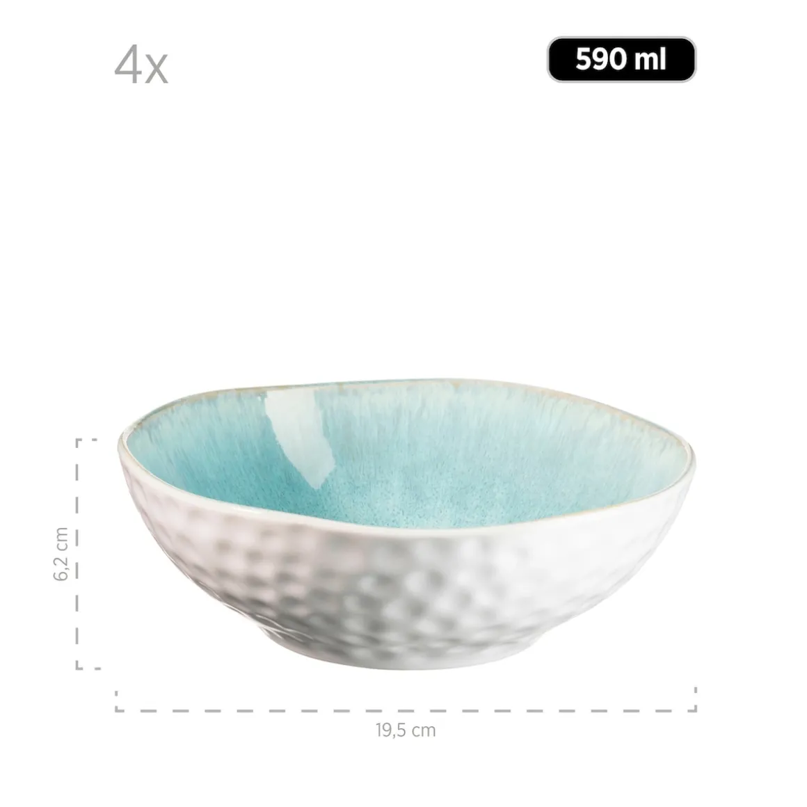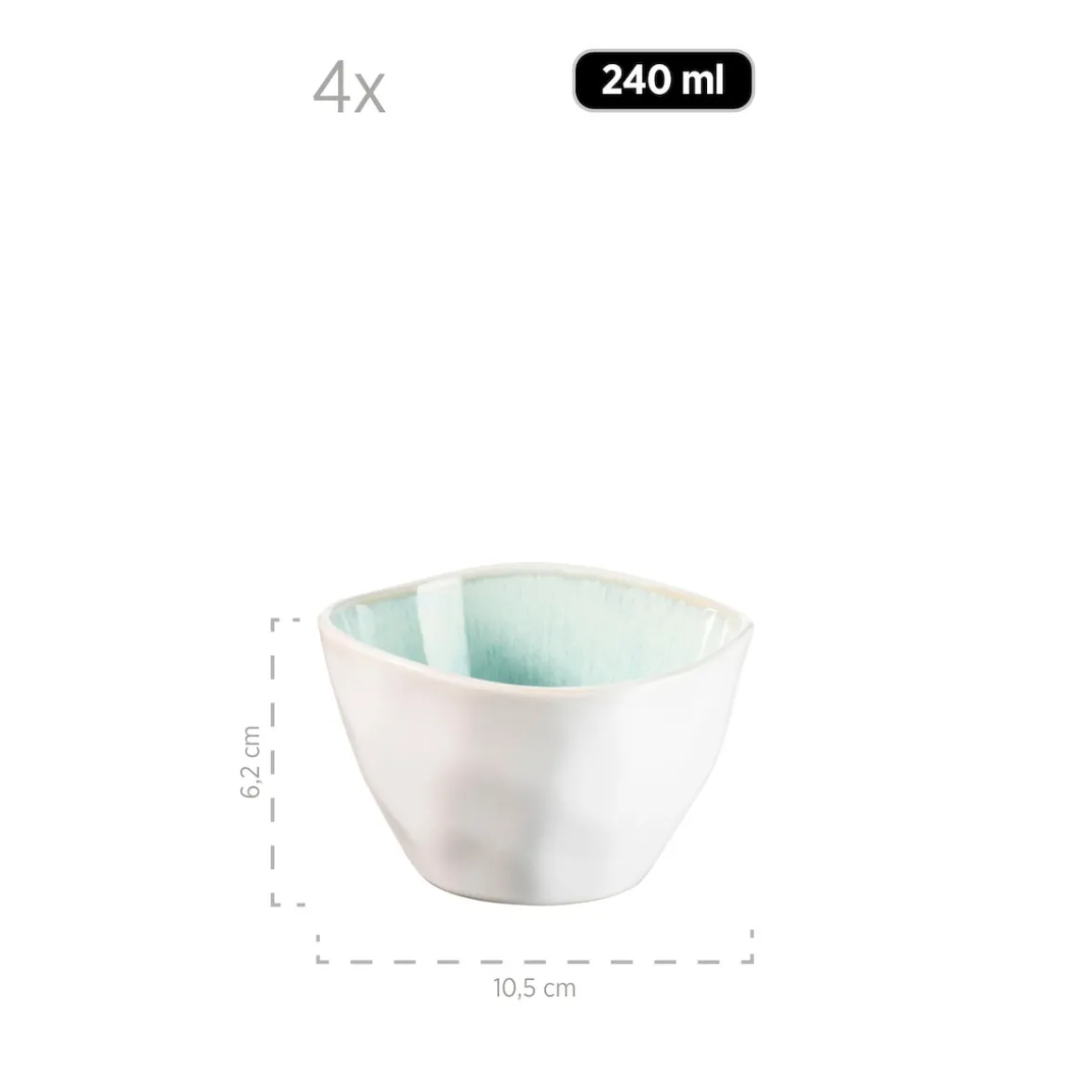 Die österreichische Traditionsmarke MÄSER greift mit der modernen Vintage-Kollektion „Frozen“ den stilvollen skandinavischen Wohlfühltrend auf und zeigt, wie bezaubernd Keramikgeschirr verarbeitet sein kann. Die mattweiße Außenglasur weist eine ganz besondere Haptik auf und versprüht Wärme und Gemütlichkeit in Ihrem Zuhause. Ein echter Hingucker ist die innen bzw. oben von Hand gesprenkelte Glasur, die jedes Teil zu einem Unikat macht. Dieses Set aus 9 Schüsseln und Schälchen ist perfekt kombinierbar mit anderen Artikeln der Tafelgeschirr-Kollektion Frozen von MÄSER.