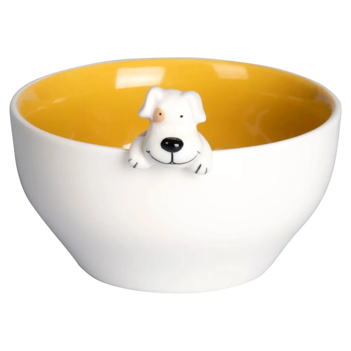 Na, der traut sich was: Hündchen „Oskar“ begrüßt Sie schon zum Frühstück mit Schabernack und lässt fröhlich seine Beine in Müsli baumeln – dabei ist es ihm völlig gleich, ob sein weißes „Fell“ ein wenig „schmutzig“ wird. Eine süße Bereicherung für jeden Frühstückstisch!