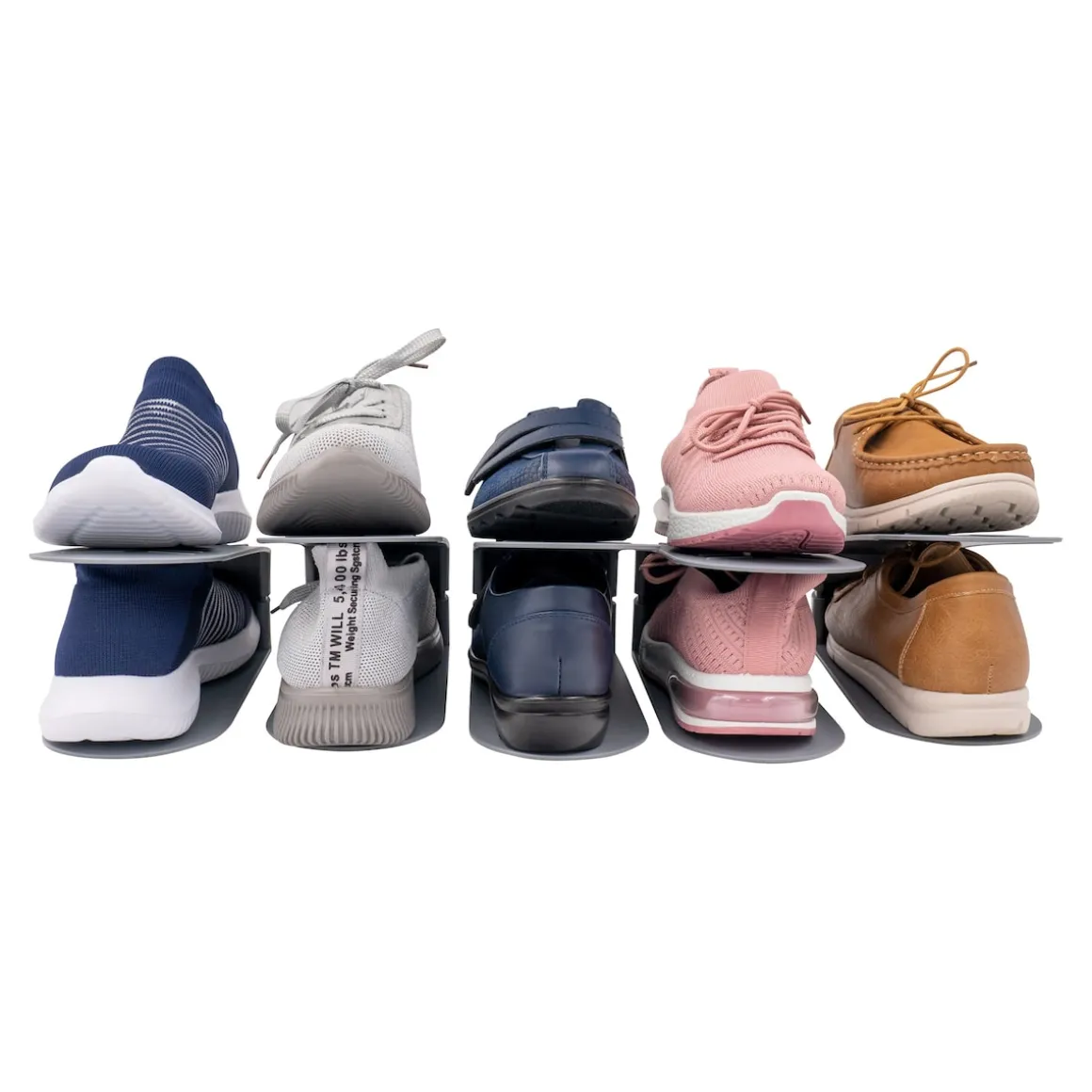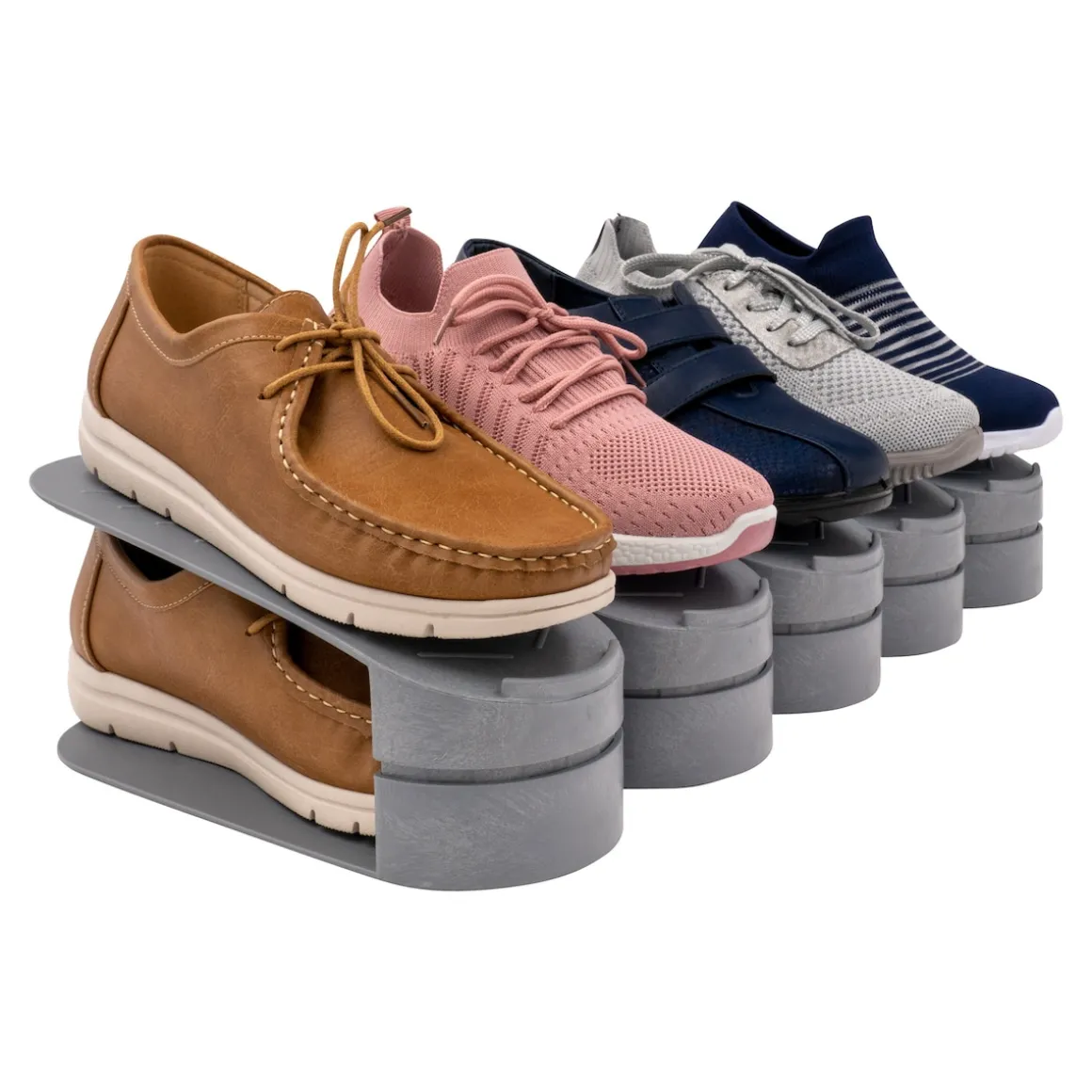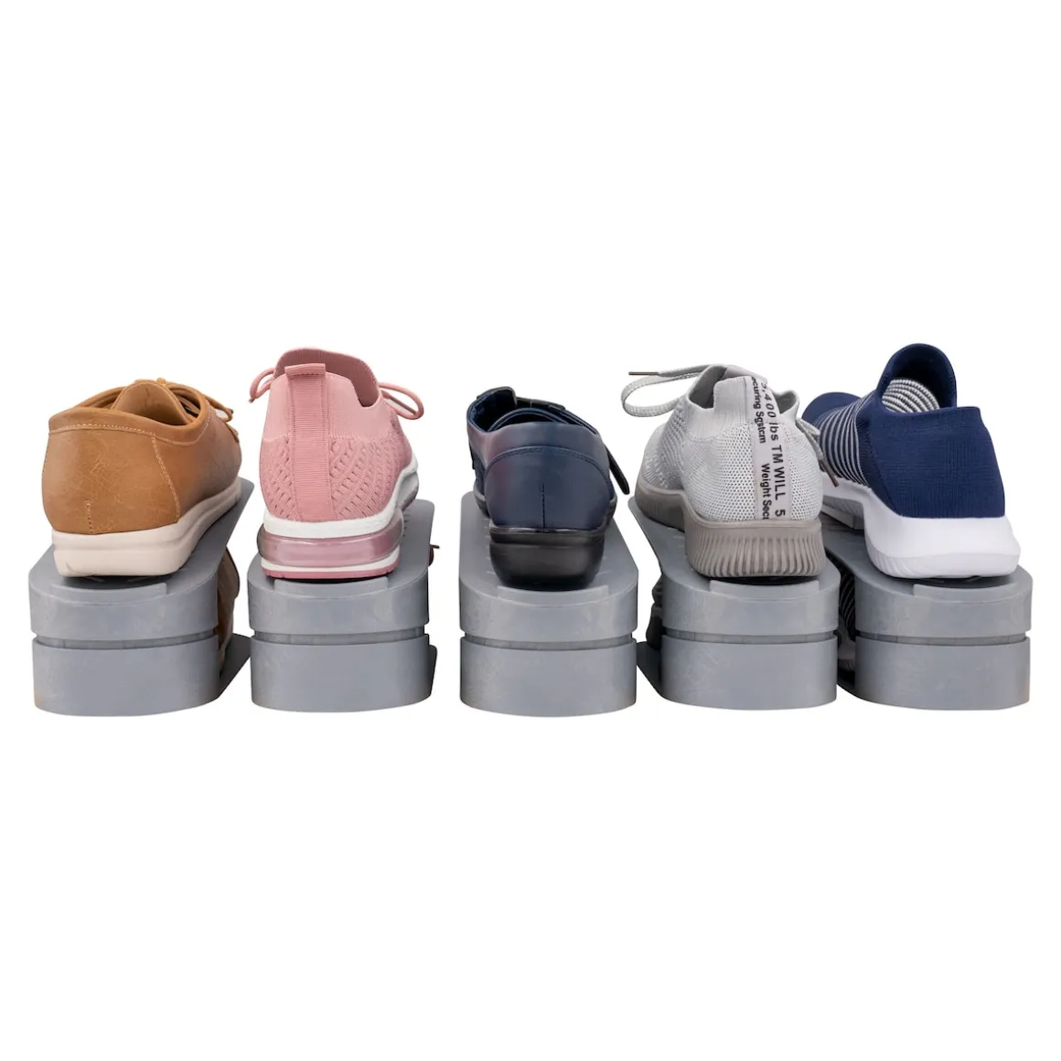 Mit diesen Schuhstaplern sparen Sie nicht nur Platz, sondern sorgen auch ganz einfach dafür, dass Ihre Schuhe sauber bleiben. Die Schuhe werden übereinander gestapelt und sind somit voneinander getrennt. Schmutz kann nicht mehr von den Sohlen auf andere Schuhe fallen und nichts wird mehr eingedrückt.