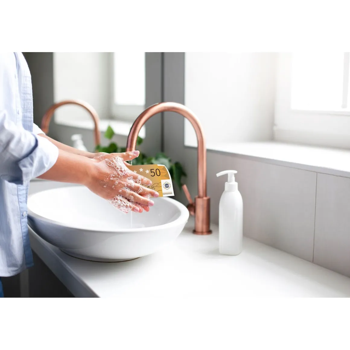 Mit dieser Seife wird Händewaschen zur humorvollen Abwechslung! In Form von 50€-Scheinen ist sie nicht nur praktisch, sondern auch ein echter Hingucker am Waschbecken. Ein Bündel enthält 10 Scheine – jeder reicht für eine gründliche Handwäsche. Perfekt als Geschenk oder für kreative Hygiene!