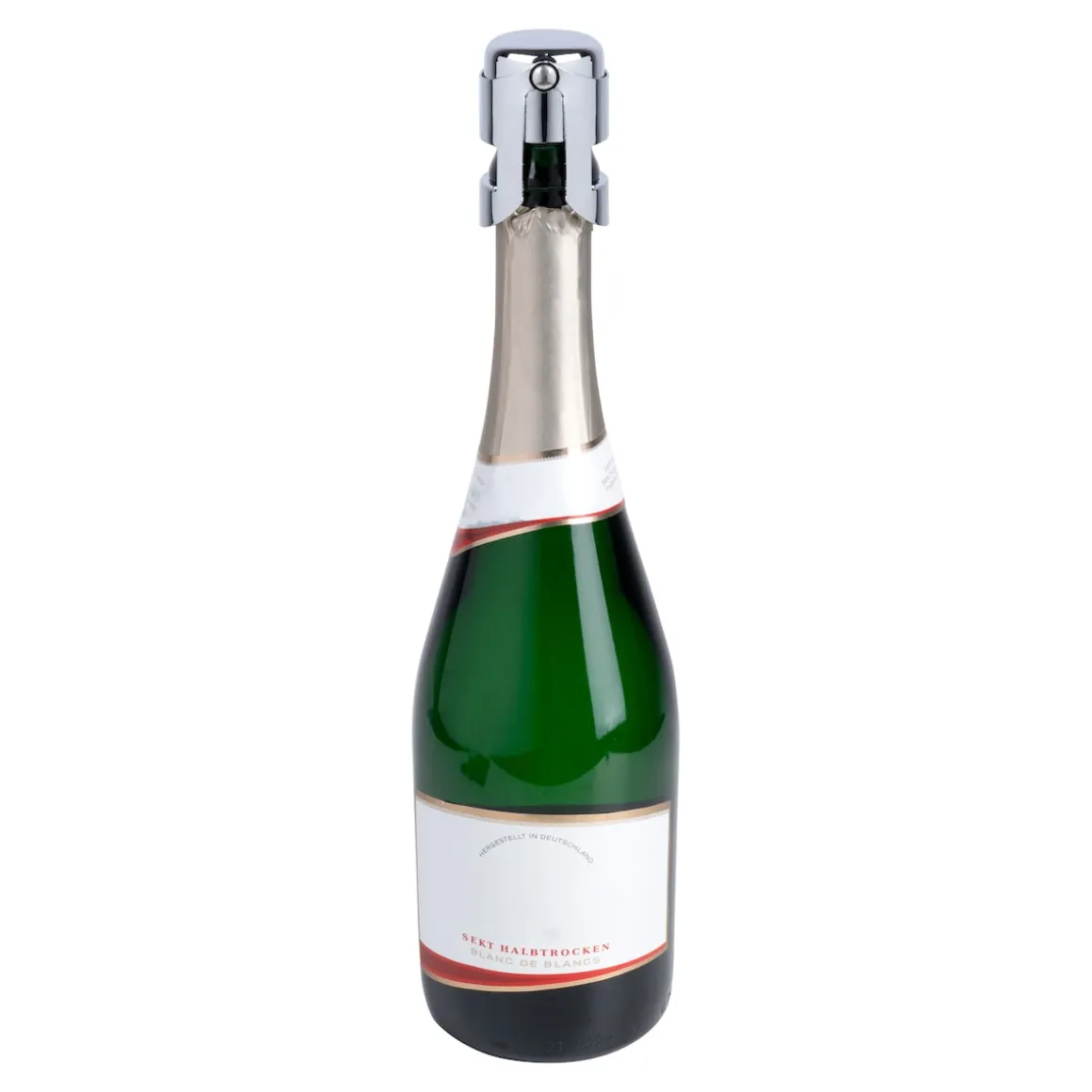 Genießen Sie Ihren Sekt bis zum letzten Tropfen! Dank dieses luftdichten Verschlusses klappt das hervorragend, denn die Kohlensäure bleibt zuverlässig in der Flasche. Das edle Chrom-Design tut ein Übriges, um das perlende Nass stilvoll in Szene zu setzen.