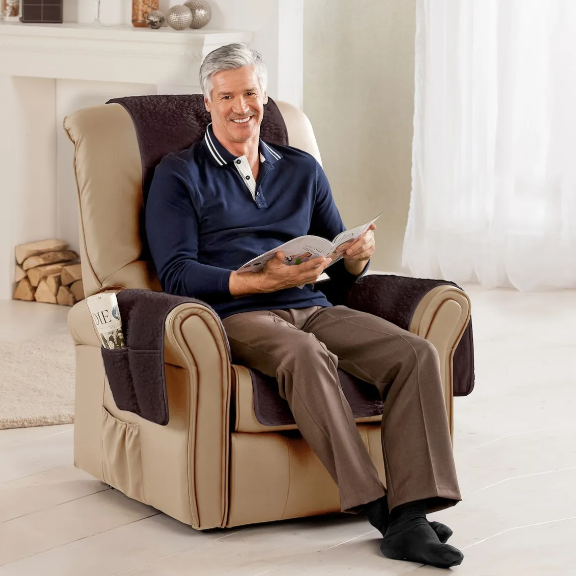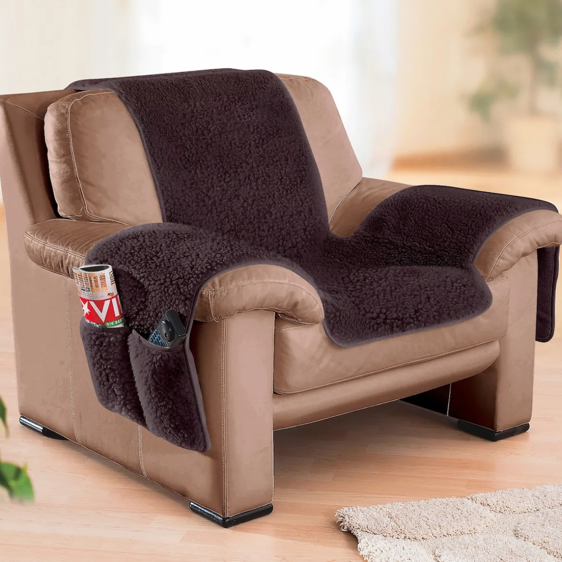 Sesselschoner mit Schurwolle braun