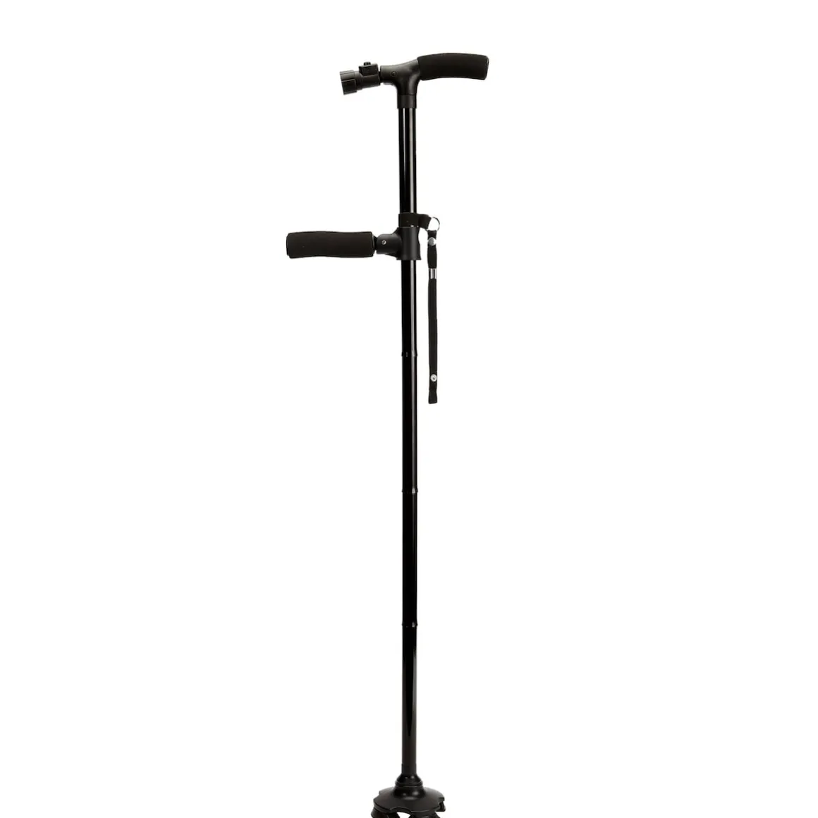 Der neue Sicherheits-Gehstock „Clever Cane“ ist mehr als ein Gehstock: Mit zweitem ausklappbarem Griff dient er auch als Aufstehhilfe – ideal z.B. von Parkbank, Sofa oder Autositz. Zwei Handgriffe ermöglichen sicheres Abstützen mit beiden Armen. Das eingebaute helle LED-Licht sorgt für Orientierung im Dunkeln, der schwenkbare Strahler zeigt den Weg oder beleuchtet z.B. das Schlüsselloch. Für zusätzliche Sicherheit sorgt ein lauter SOS-Alarm (ca. 100 dBA), der per Knopfdruck auslösbar ist. Der besonders geformte Fuß mit drei Gummifüßen bietet hohe Stabilität – auch auf unebenem Boden – und der Gehstock kann frei stehen. Die Höhe ist verstellbar, und für unterwegs lässt sich der Clever Cane auf 32 cm zusammenfalten und leicht verstauen – perfekt, wenn man ihn nicht ständig braucht.