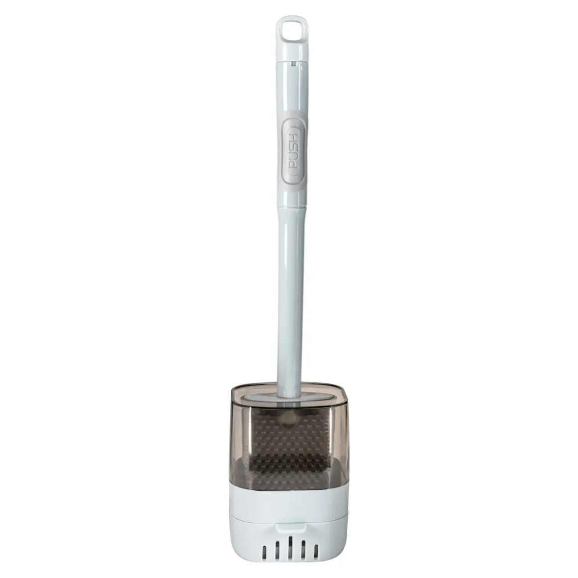 Stets frische Sauberkeit! Auf Knopfdruck versprüht diese WC-Bürste beim Putzen das eingefüllte Reinigungsmittel (Fassungsvermögen: 40 ml) und erspart Ihnen so einen Arbeitsgang! Der Bürstenkopf aus hygienischem Silikon erreicht auch schwer erreichbare Stellen unter dem Rand und ist leicht zu reinigen. Im mitgelieferten Behälter wartet sie hygienisch und geruchssicher auf ihren nächsten Einsatz. Inkl. Klebepad zur Wandbefestigung.