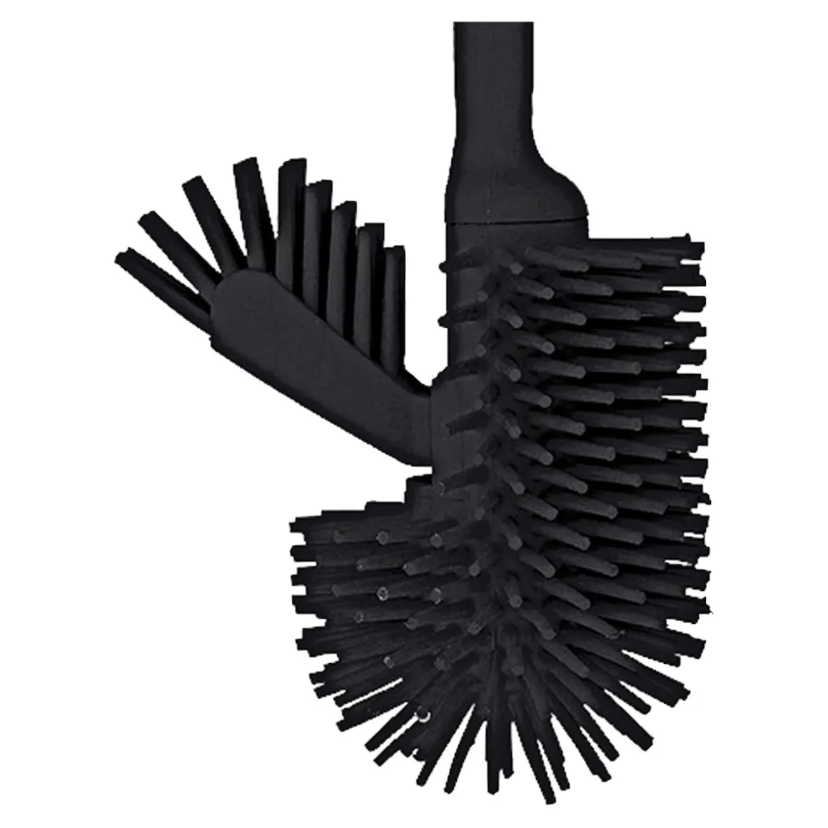 Die Silikon WC-Bürste ist eine hervorragende Alternative zur herkömmlichen Toilettenbürste aus Kunststoff. Mit ihrem zeitlosen Design passt sie in jedes Badezimmer und ist auch hervorragend für das Gäste-WC geeignet. Das Besondere an dieser Bürste sind ihre strapazierfähigen Silikon-Borsten. Durch ihre Antihaftbeschichtung kann sich der Schmutz nicht in der Bürste festsetzen. Selbst hartnäckigem Toilettenpapier, das sich nicht herunterspülen lassen will, kann mit der Bürste nachgeholfen werden, ohne dass es in den Borsten hängen bleibt. Die integrierte kleine Zusatzbürste gelangt problemlos unter den Rand der Toilettenschüssel und macht auch da sauber, wo herkömmliche Bürsten nicht hinkommen.