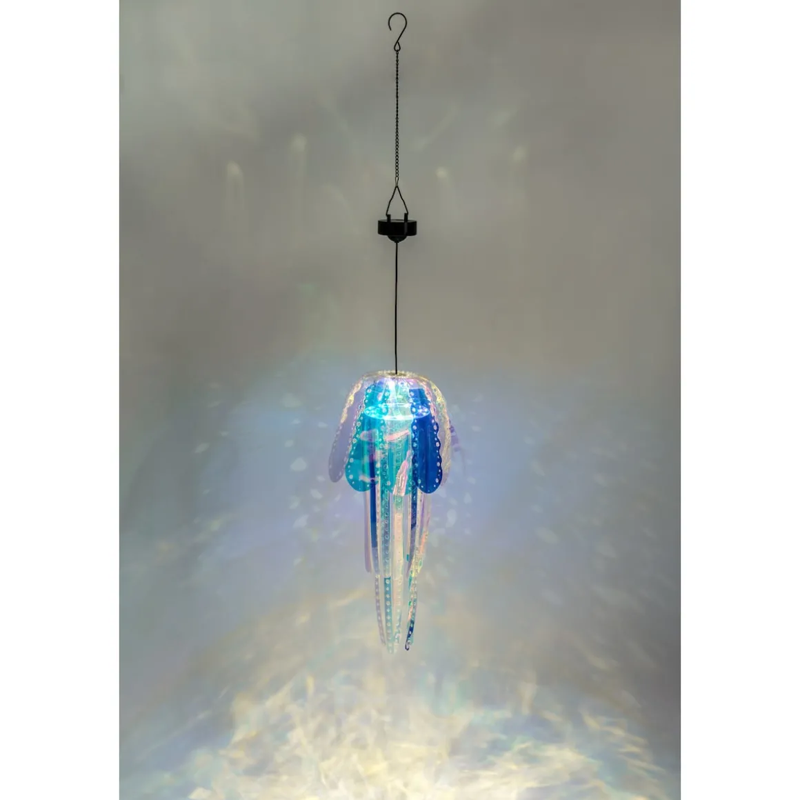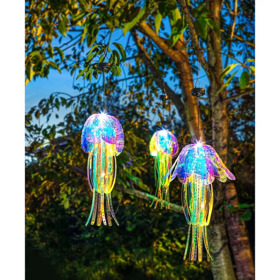 Mit diesen Leucht-Quallen verwandeln Sie Ihren Garten wortwörtlich in ein Lichtermeer: Die über den Tag verzehrte Sonnenenergie bringt die farbenfrohen Ozeanbewohner in der Dämmerung in schimmernden Regenbogenfarben zum Strahlen. Ihre Tentakel tanzen dabei anmutig im Wind. Mit Aufhänger.