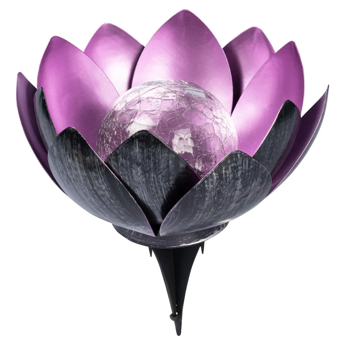 Der Lotus gilt als Symbol für Reinheit, Kreativität – und Erleuchtung! Im Garten oder auf dem Tisch platziert, erstrahlt die Kugel der opulenten Metallblüte bei Anbruch der Dämmerung in warmweißem Licht. Die changierenden Farben der Blütenblätter wirken magisch und vereinen sich zu einem romantischen Lichtspiel. Sensationell effektvoll! Mit Erdspieß.