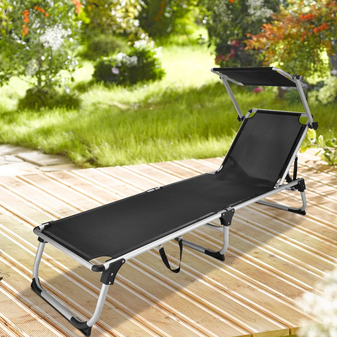 Genießen Sie die wohltuende Sonne in unserer Sonnenliege mit Dach. Dank des dreistufig verstellbaren Rückenteils finden Sie Ihre perfekte Liegeposition. Das Sonnendach lässt sich individuell anpassen, während die witterungsbeständige Textilene-Bespannung für Langlebigkeit sorgt. Die stabile Dreibeinkonstruktion gewährleistet Sicherheit und Komfort für entspannte Stunden im Freien.